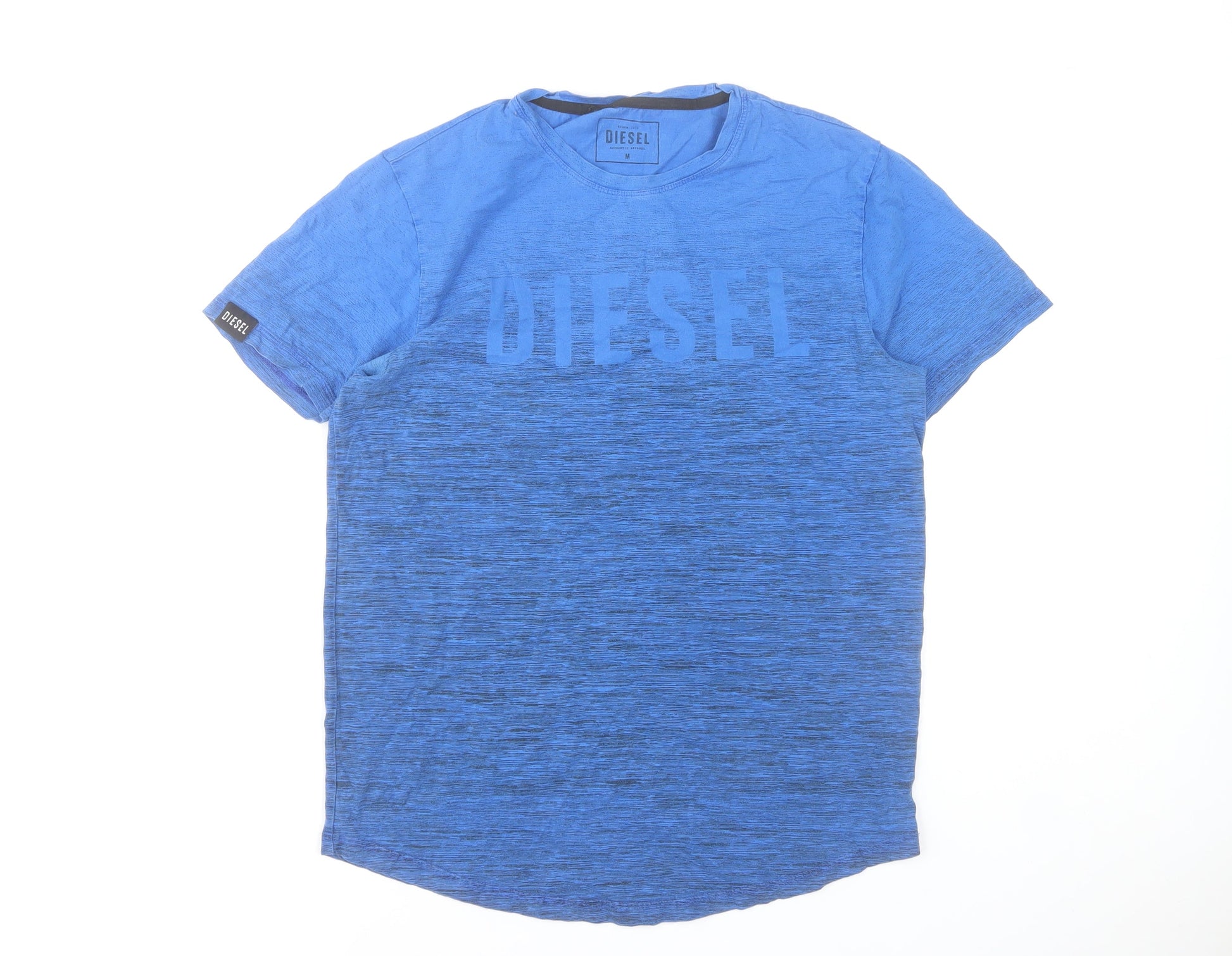 Diesel Men Blue Cotton Crew Neck Logo Short Sleeve T-Shirt M