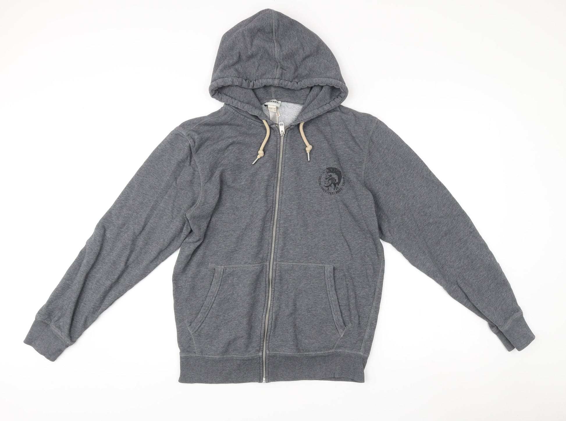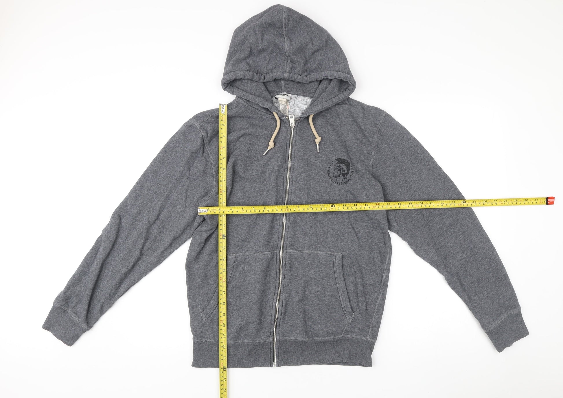 Diesel Men’s Grey Full Zip Hoodie Size M Logo Graphic Sweatshirt