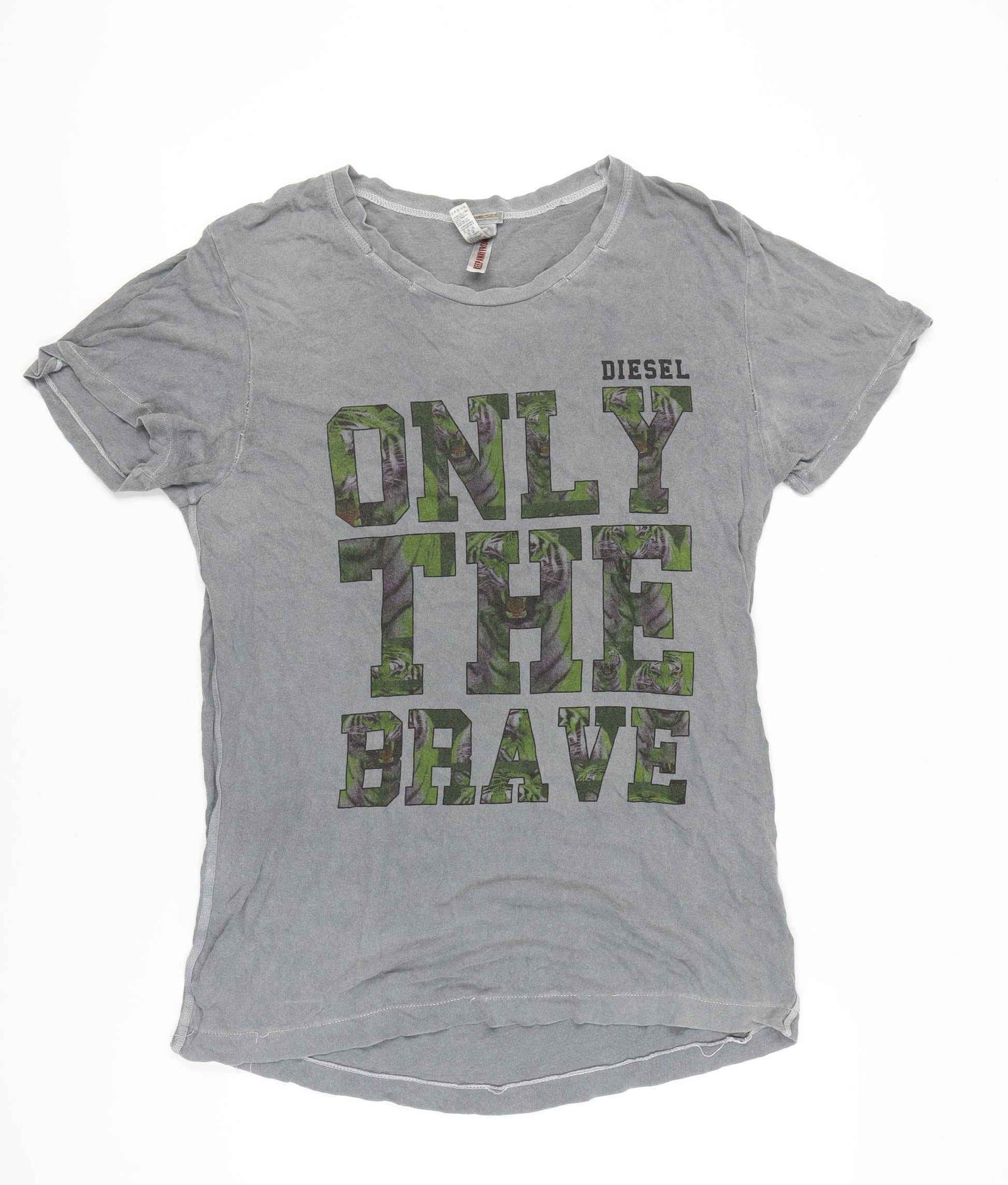 Diesel Men’s Grey L Graphic Print Cotton T-Shirt Crew Neck