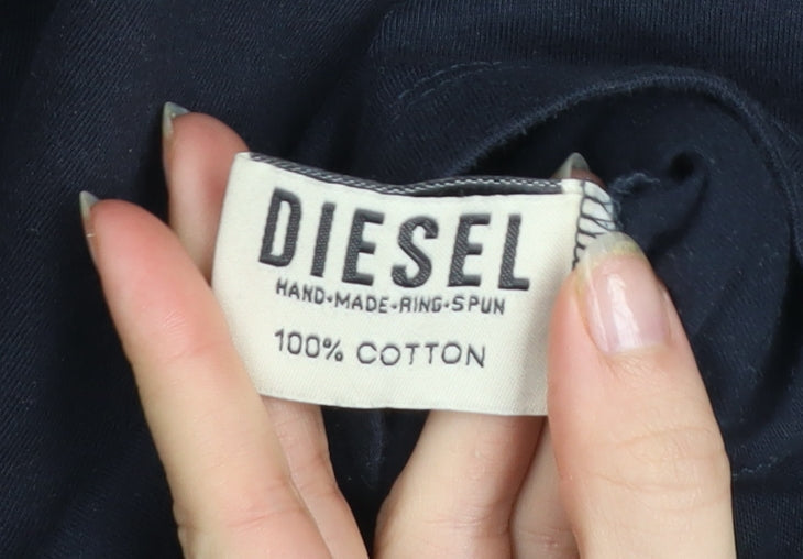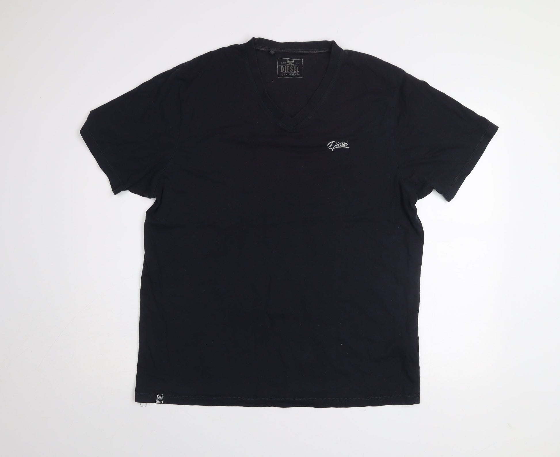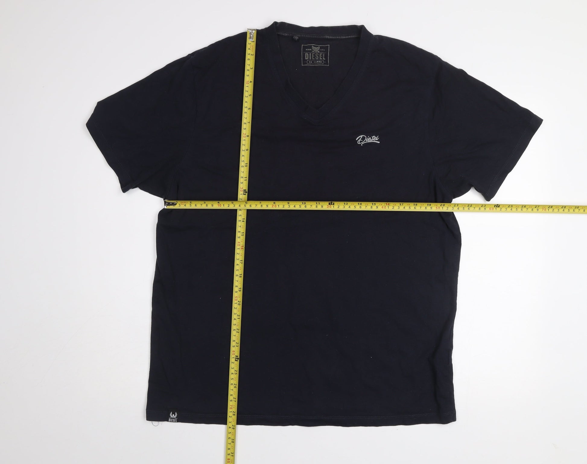 Diesel Men's Black 2XL V-Neck Ring Spun Cotton T-Shirt