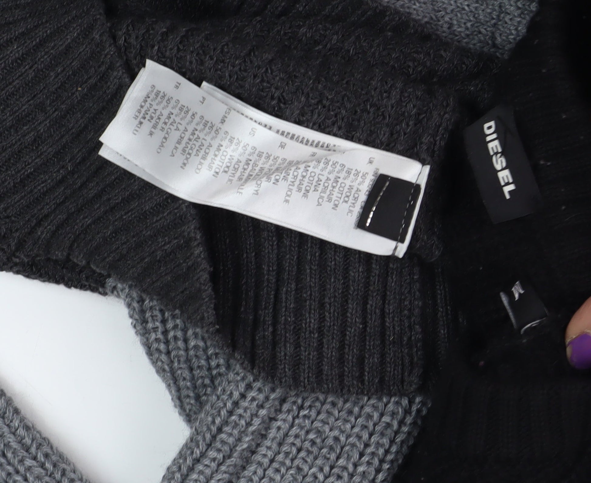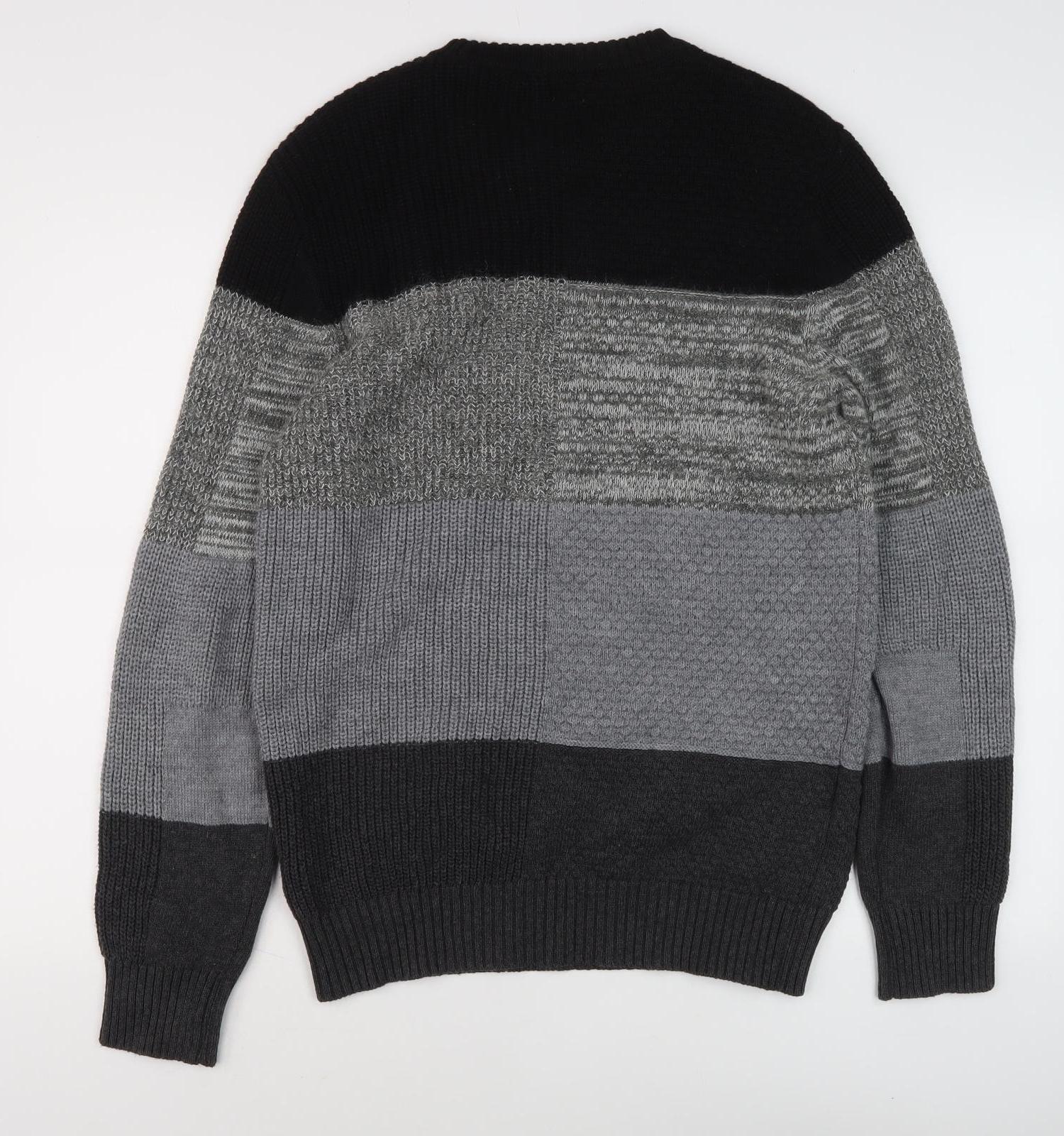 Diesel Men's Black Grey Pullover Jumper, Size S, Striped