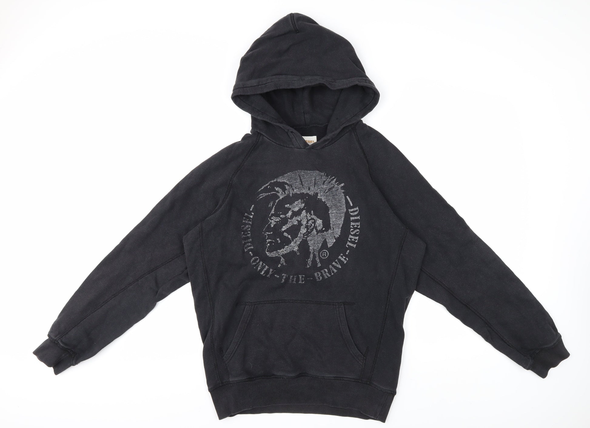 Diesel Mens Black Pullover Hoodie M with Logo Print
