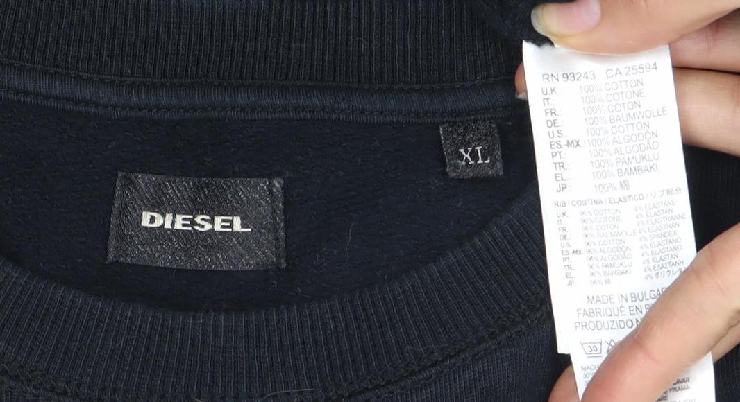 Diesel Men's Black XL Pullover Wolf Graphic Sweatshirt