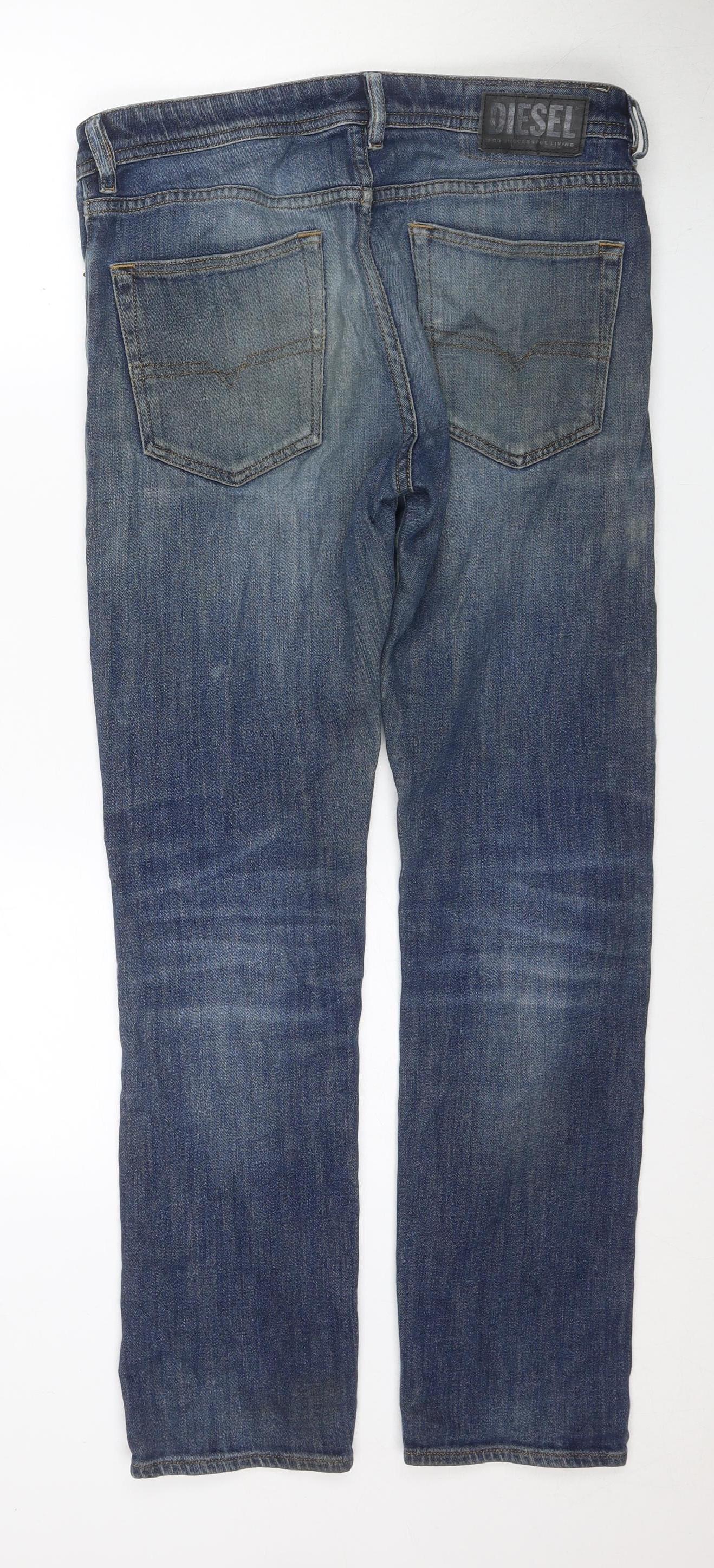 Diesel Men's Blue Straight Jeans Size 32 Distressed