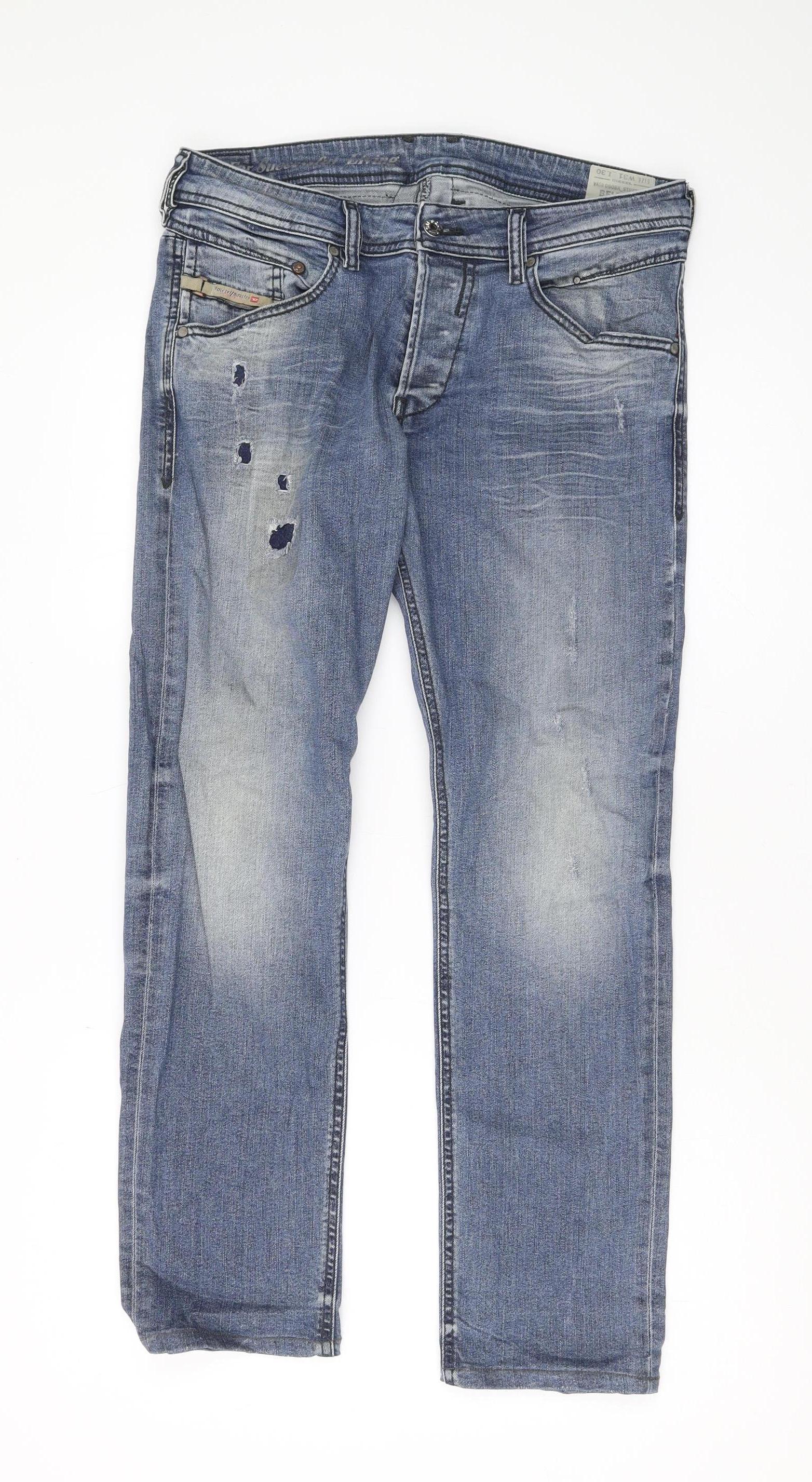Diesel Men's Blue Tapered Jeans Size 36 - Distressed Style