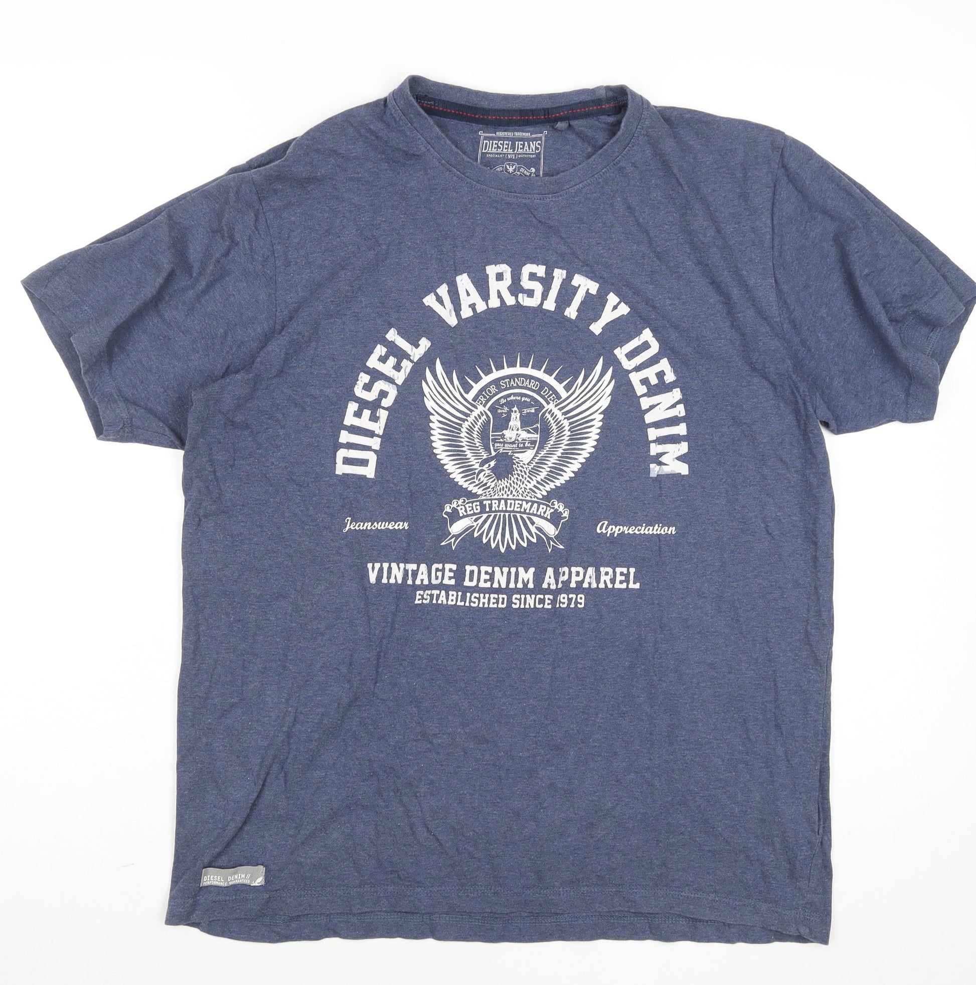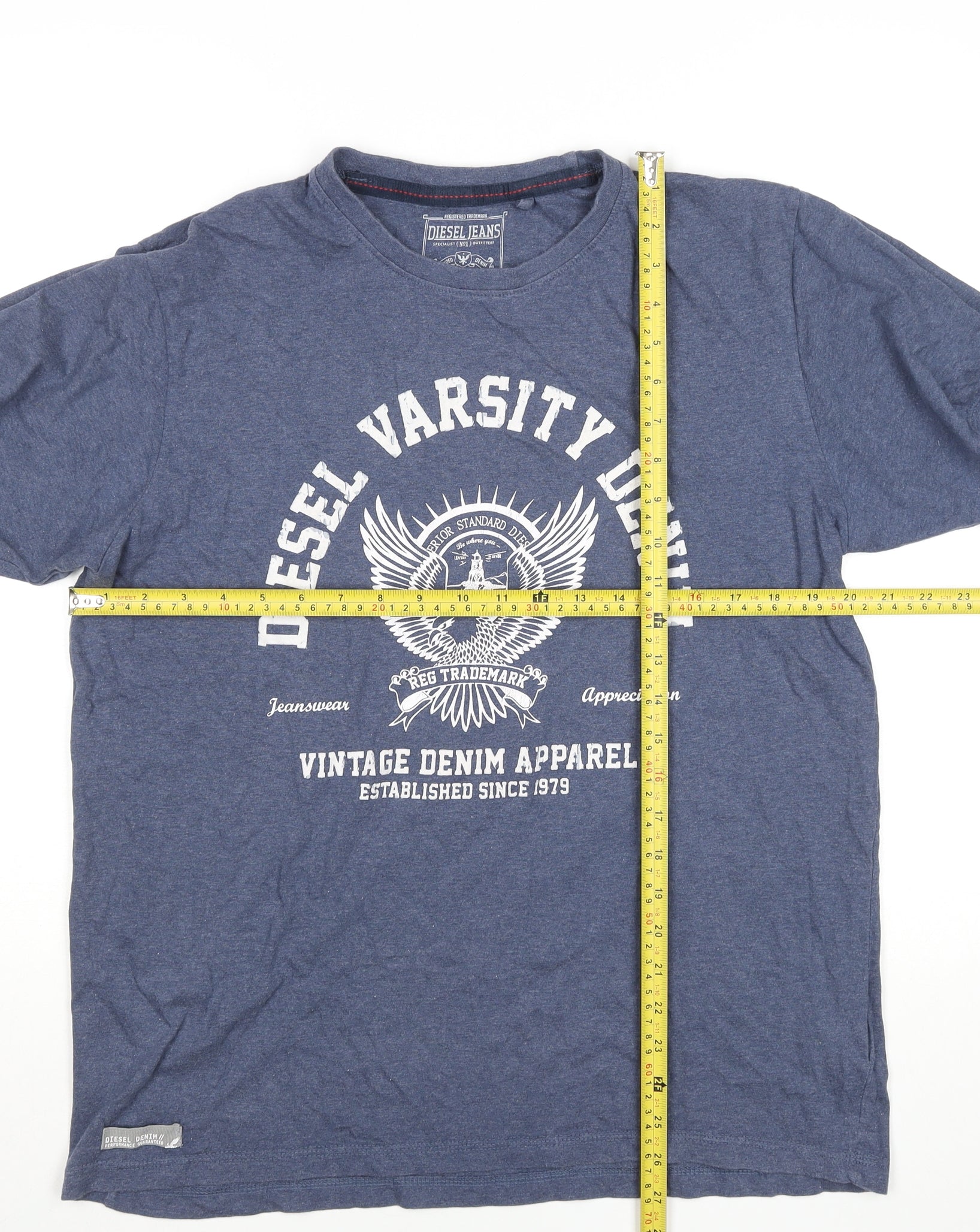 Diesel Men's Blue XL Vintage Varsity Denim Cotton T-Shirt