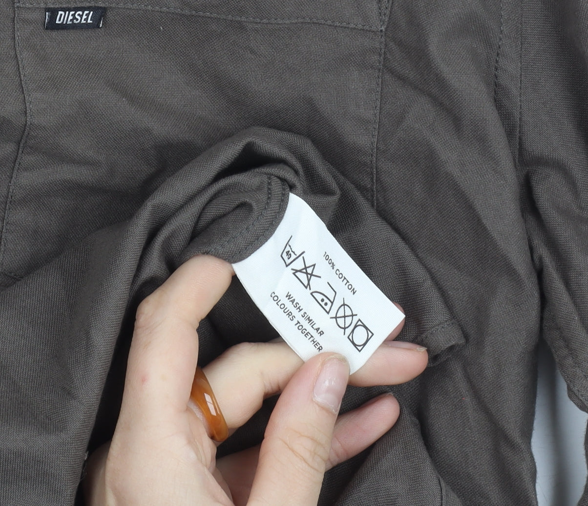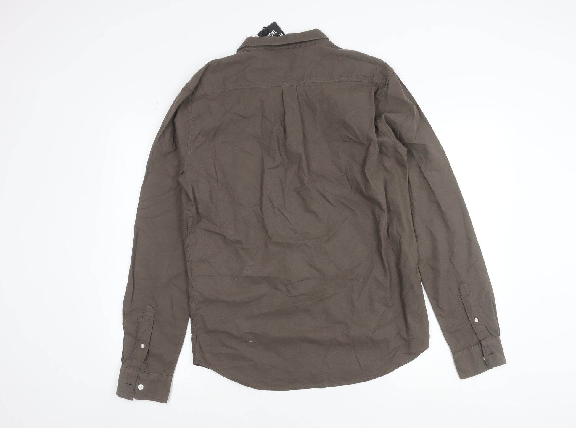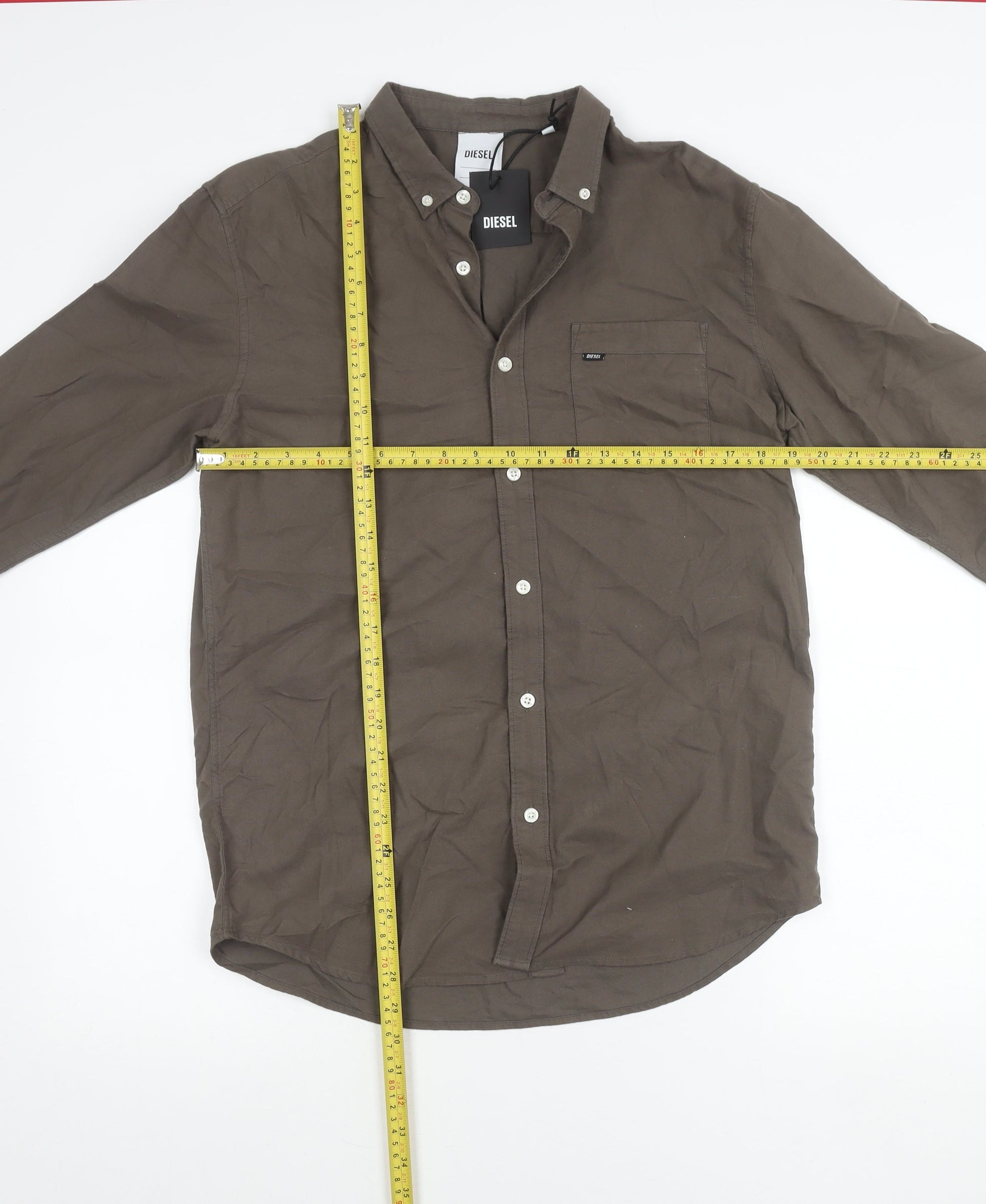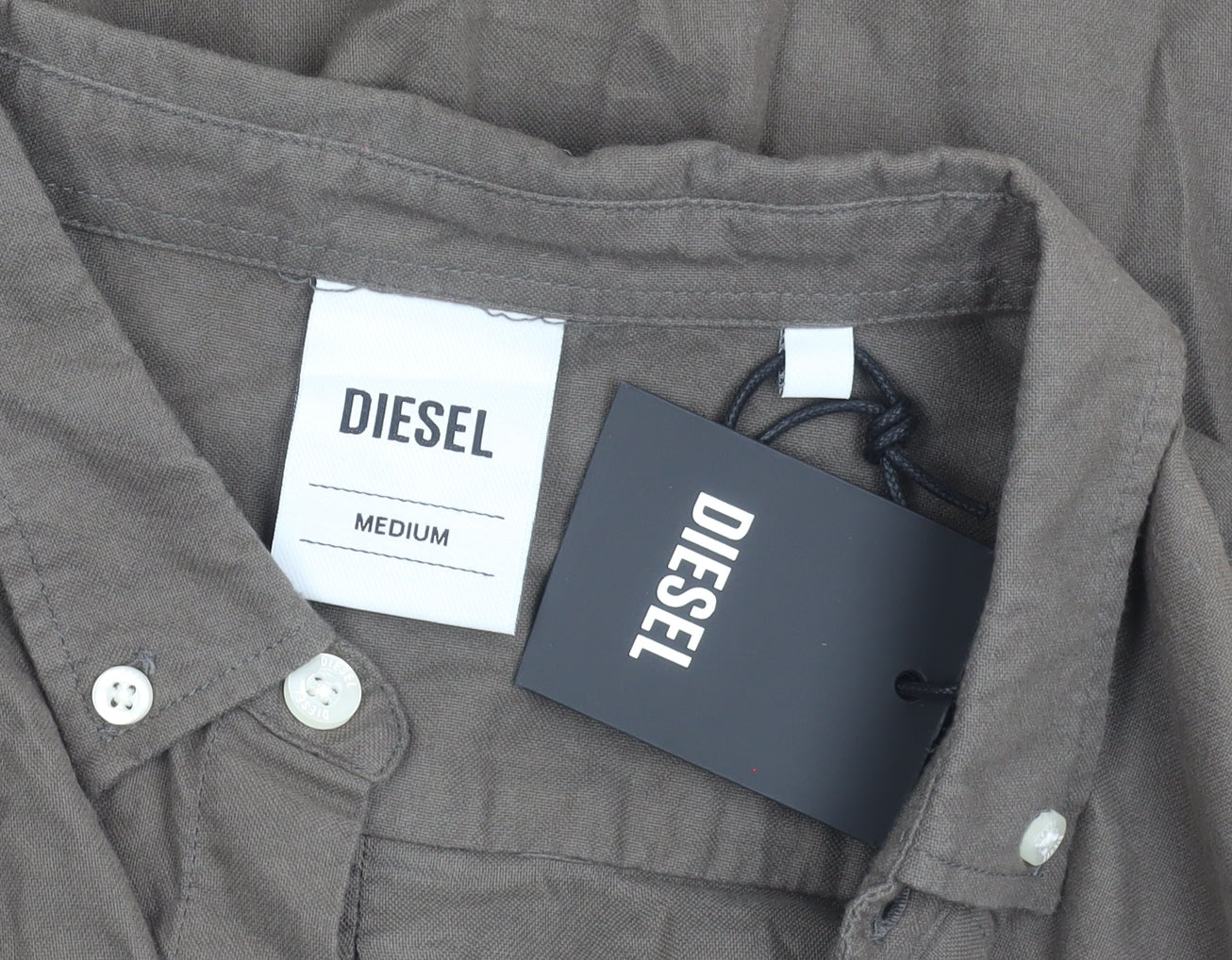 Diesel Men's Brown Button-Up Casual Shirt Medium 100% Cotton Long Sleeve