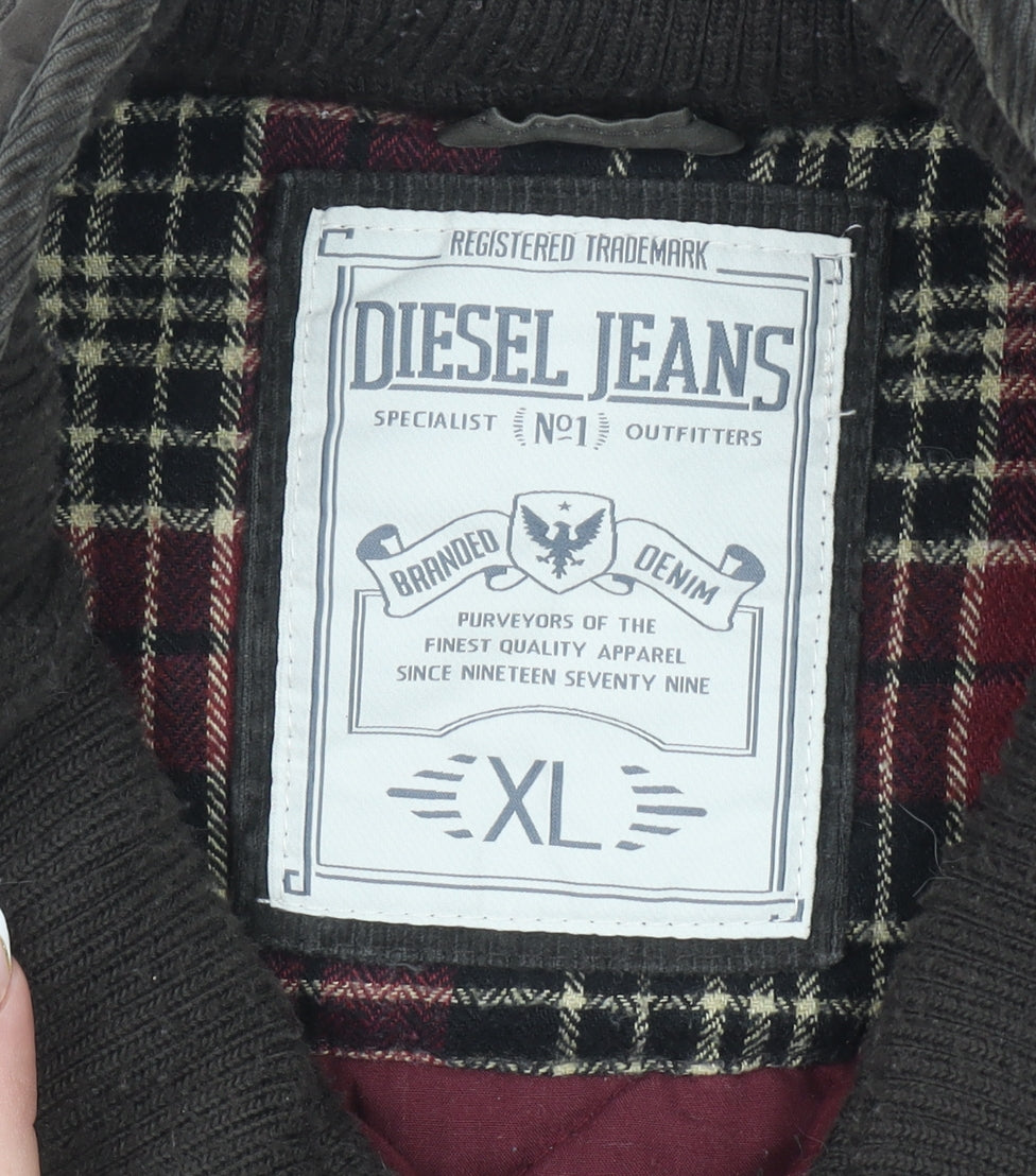 Diesel Mens Brown Quilted Cotton Jacket XL Stand Collar Outdoor Style
