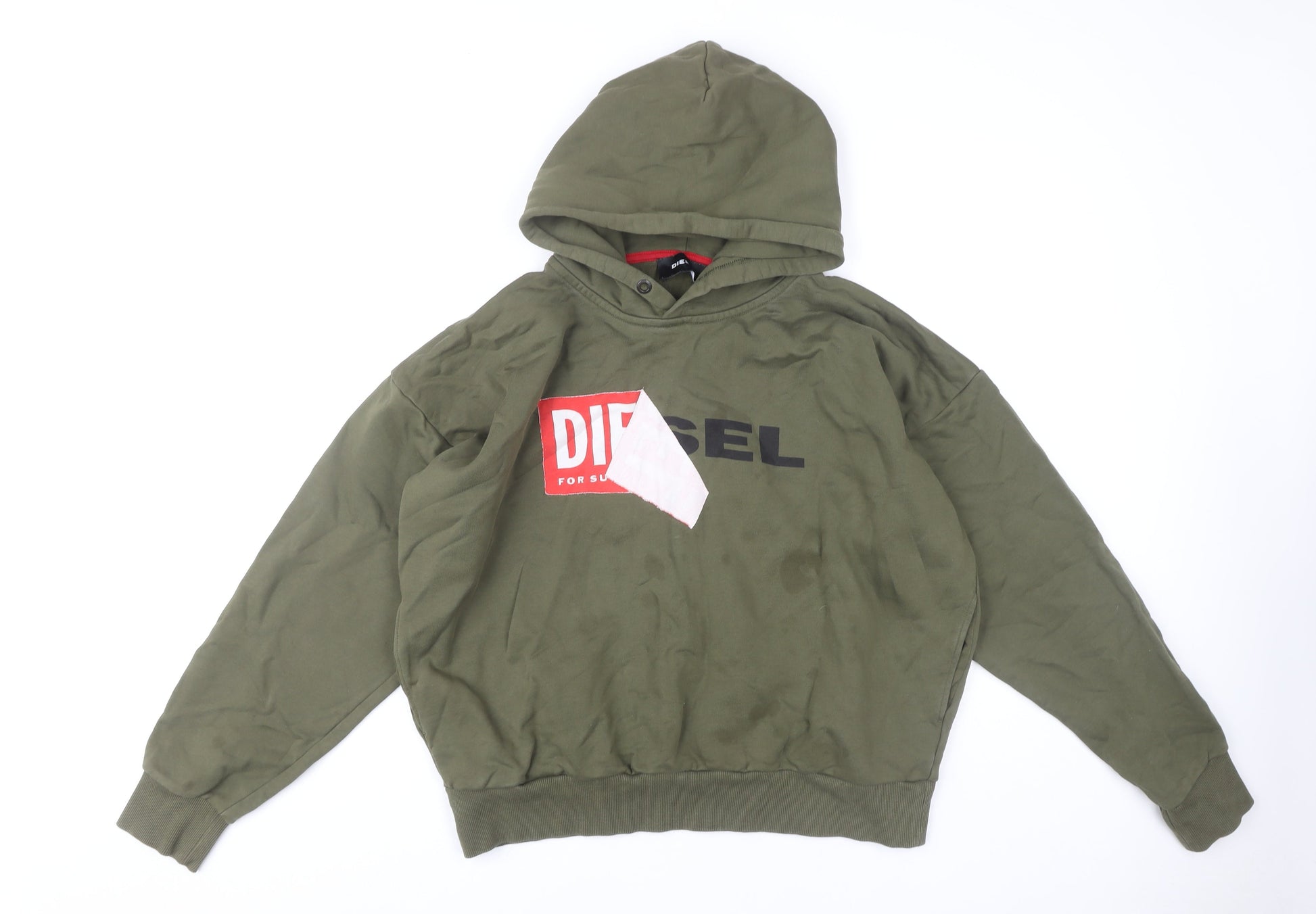 Diesel Men's Green Pullover Hoodie, L, Logo Accent