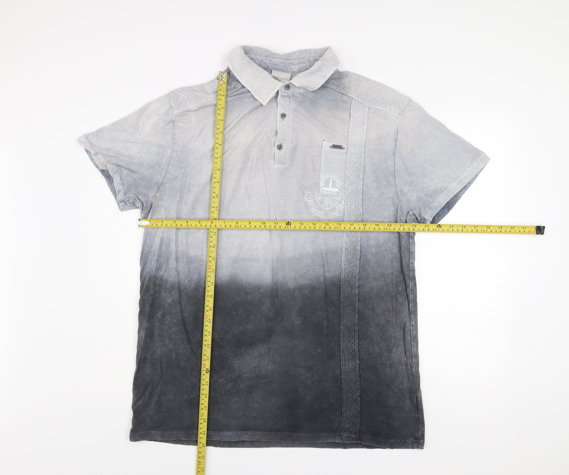 Diesel Men's Grey 3XL Acid Wash Short Sleeve Polo Shirt