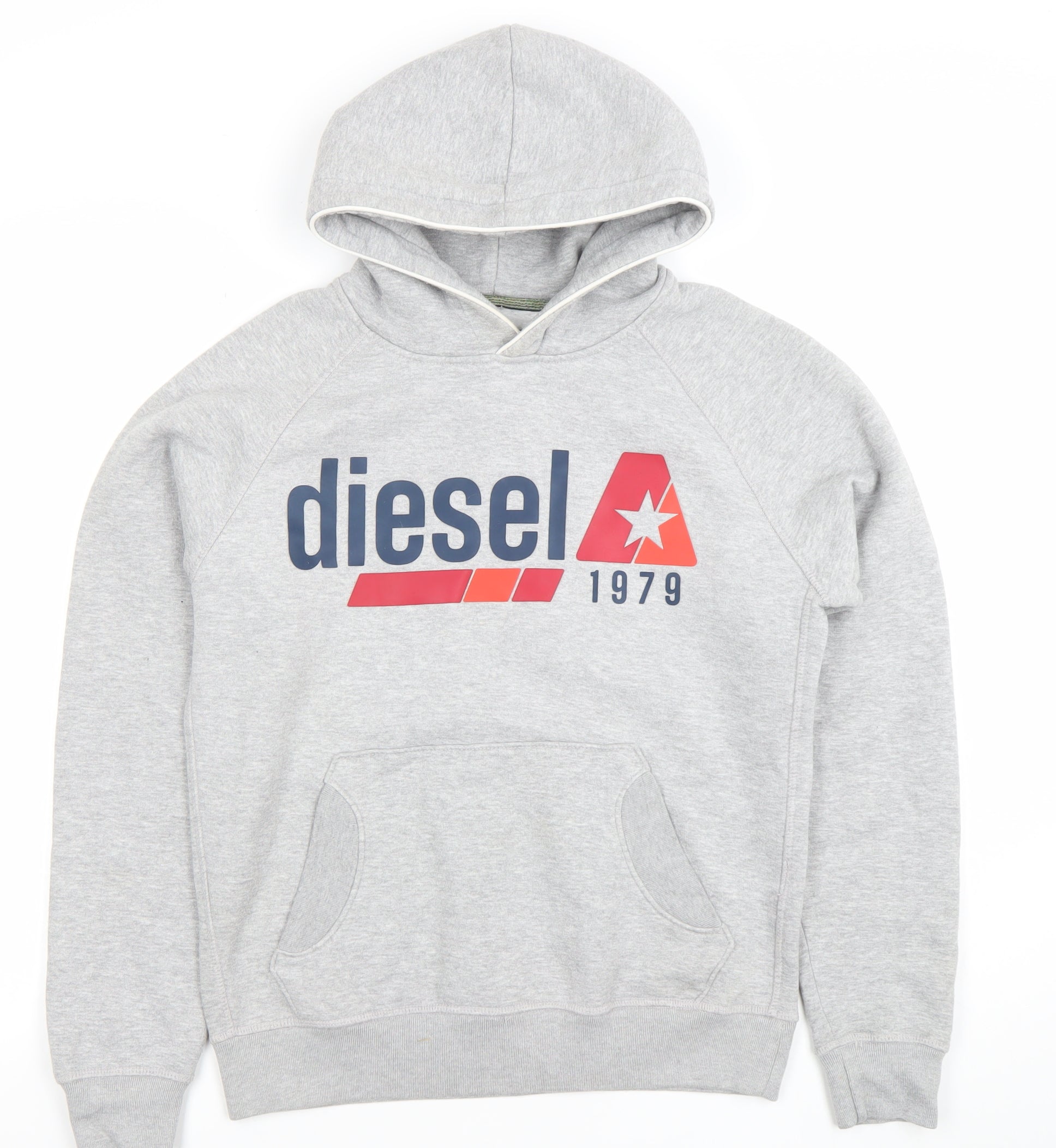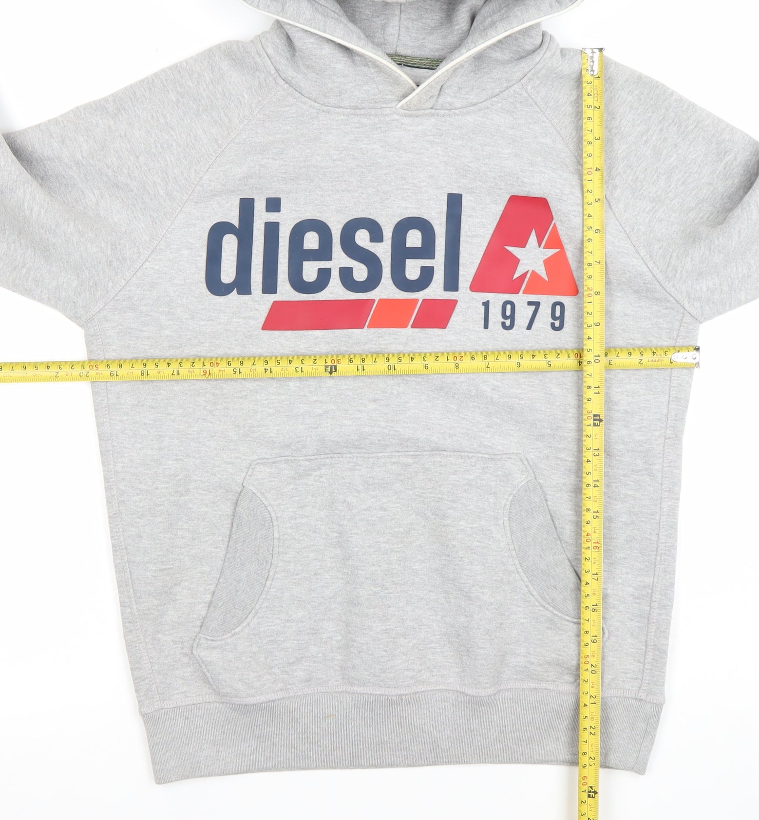 Diesel Mens Grey Pullover Hoodie XS Logo Graphic Sweatshirt