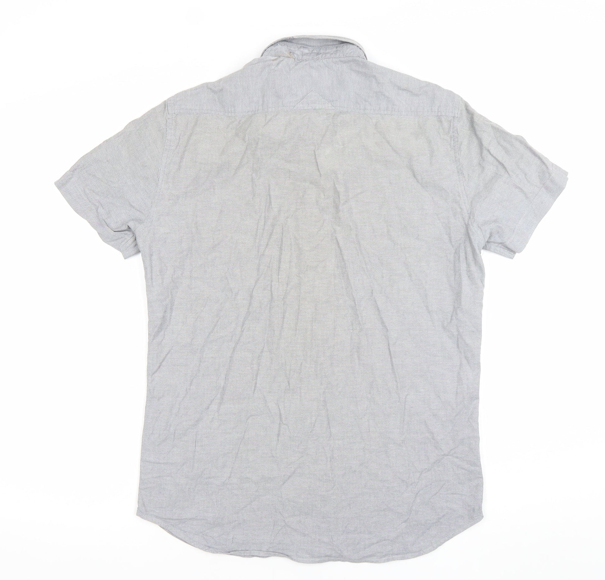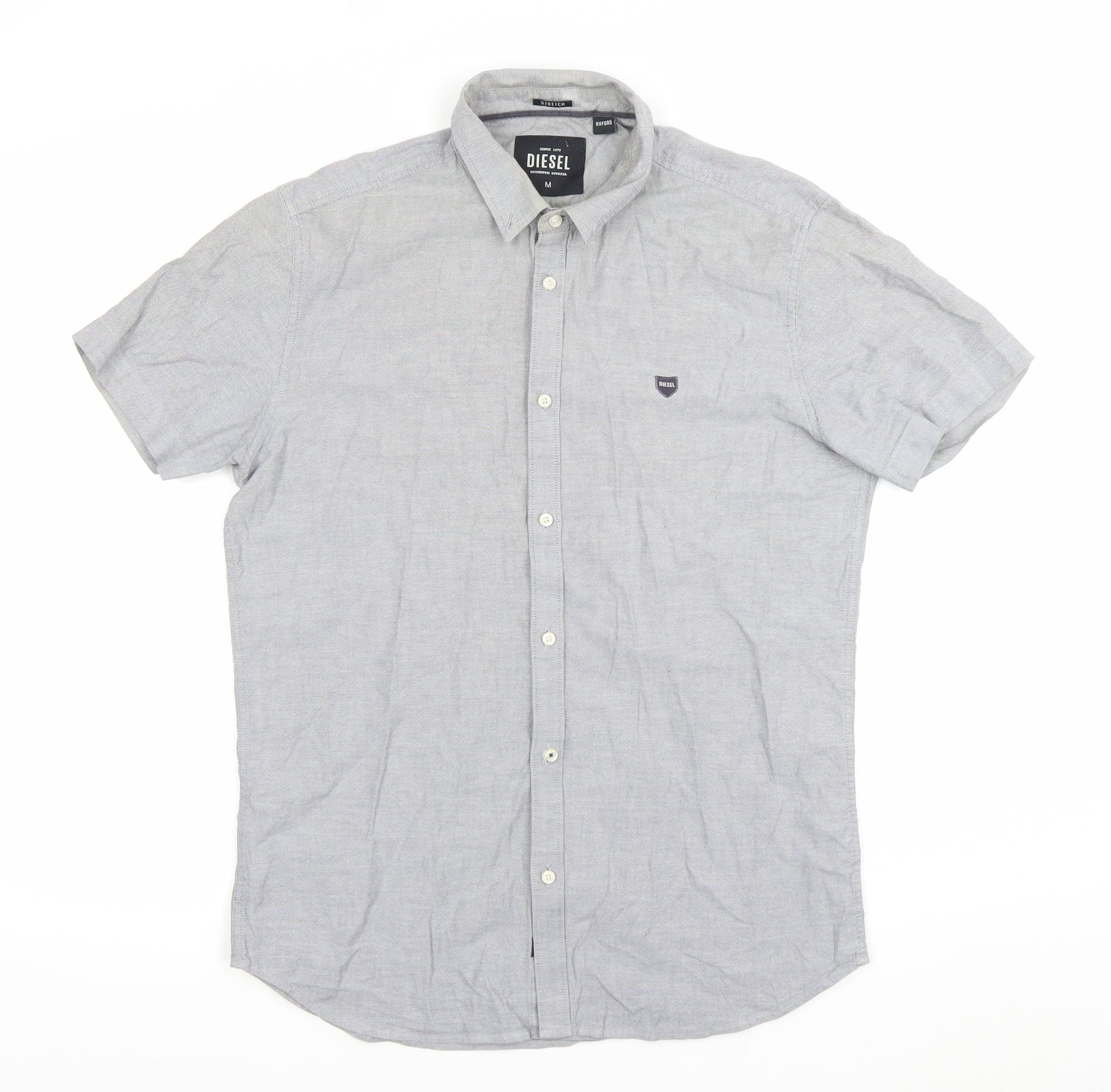 Diesel Men's Grey Short Sleeve Button-Up Oxford Cotton Shirt M