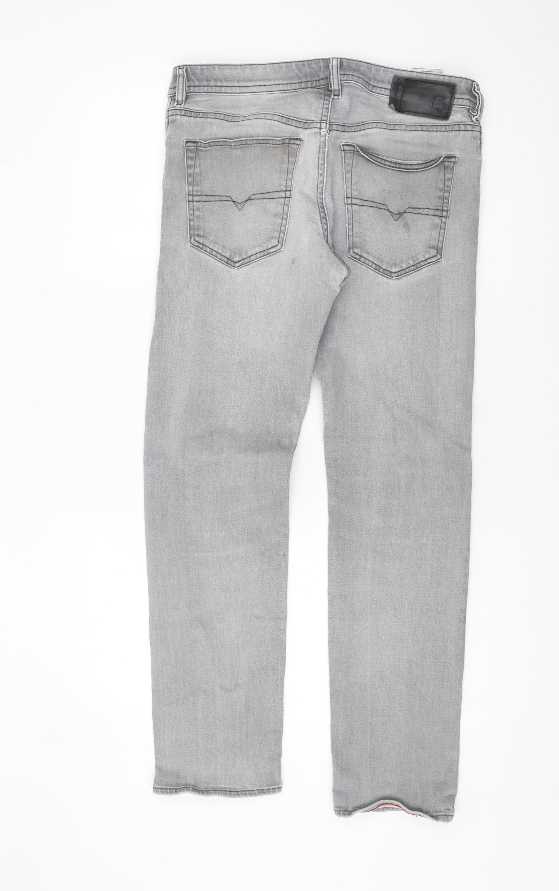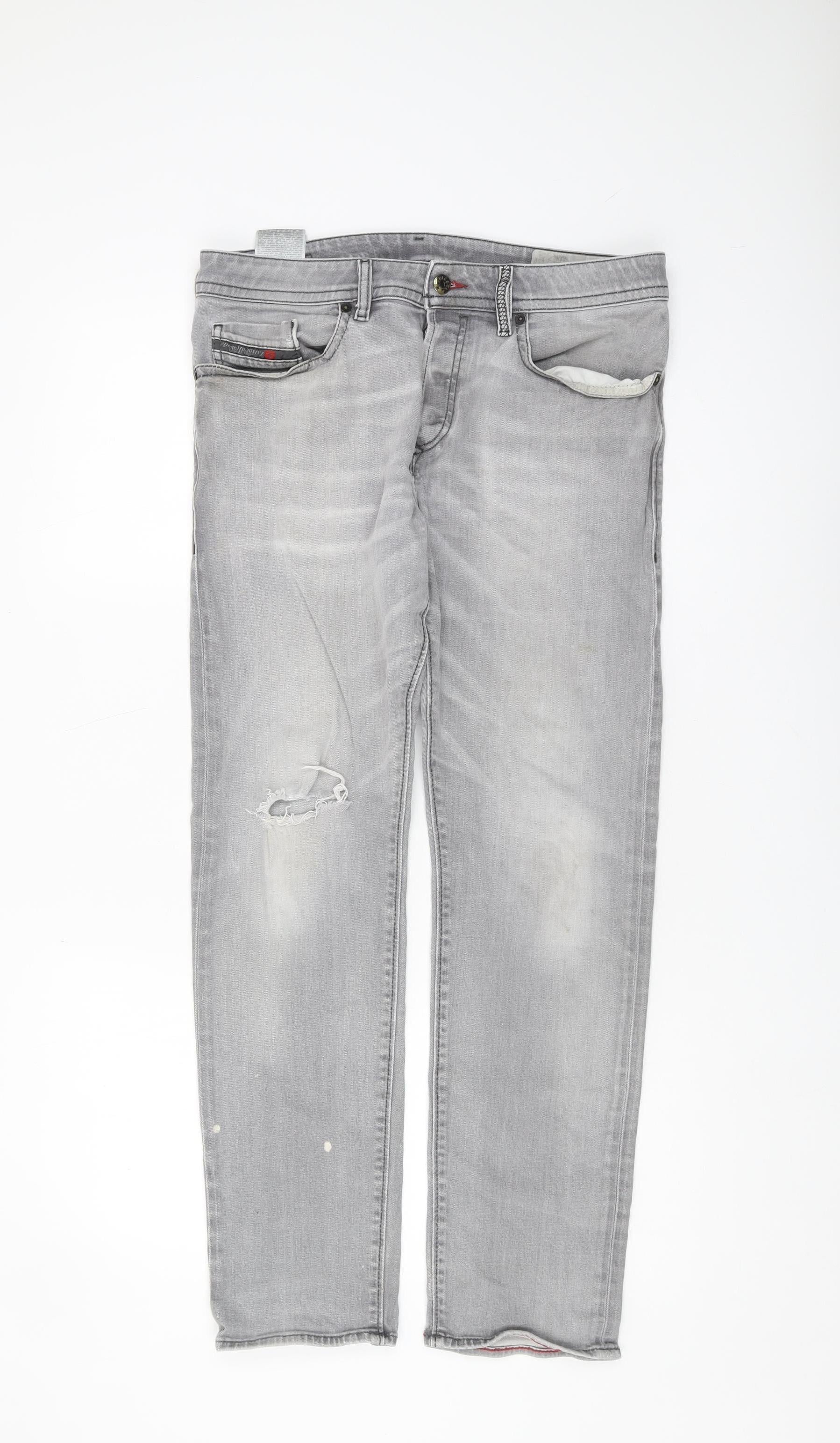 Diesel Men's Grey Slim Fit Distressed Straight Jeans W30 L30