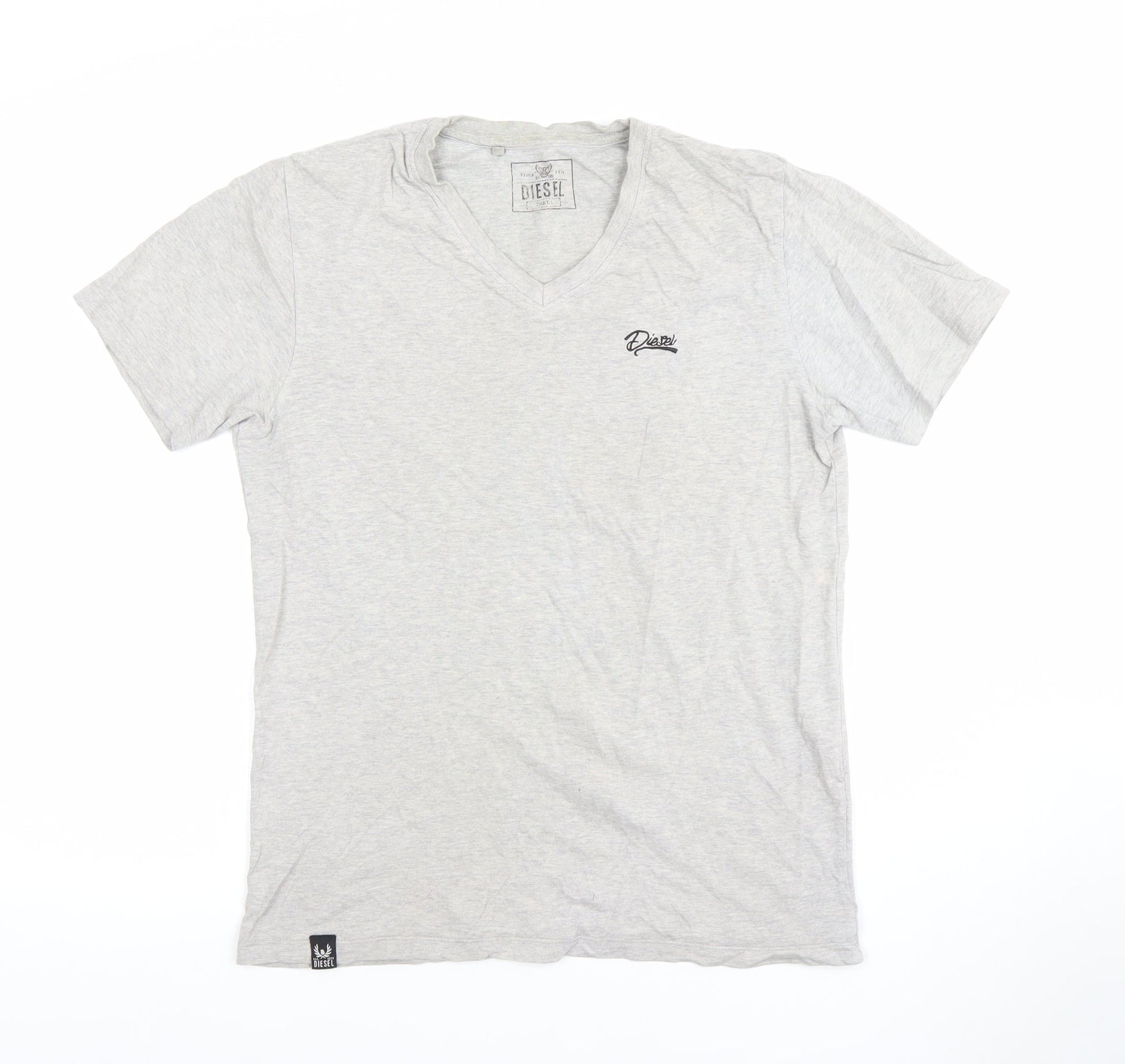 Diesel Men's Grey V-Neck Cotton T-Shirt Small