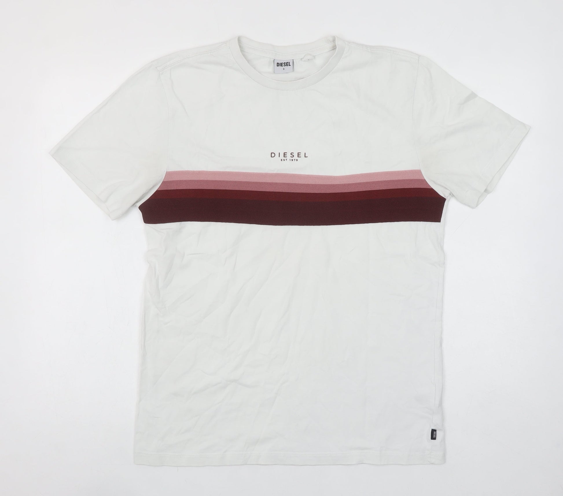 Diesel Men's White Colourblock Logo Cotton T-Shirt Size S