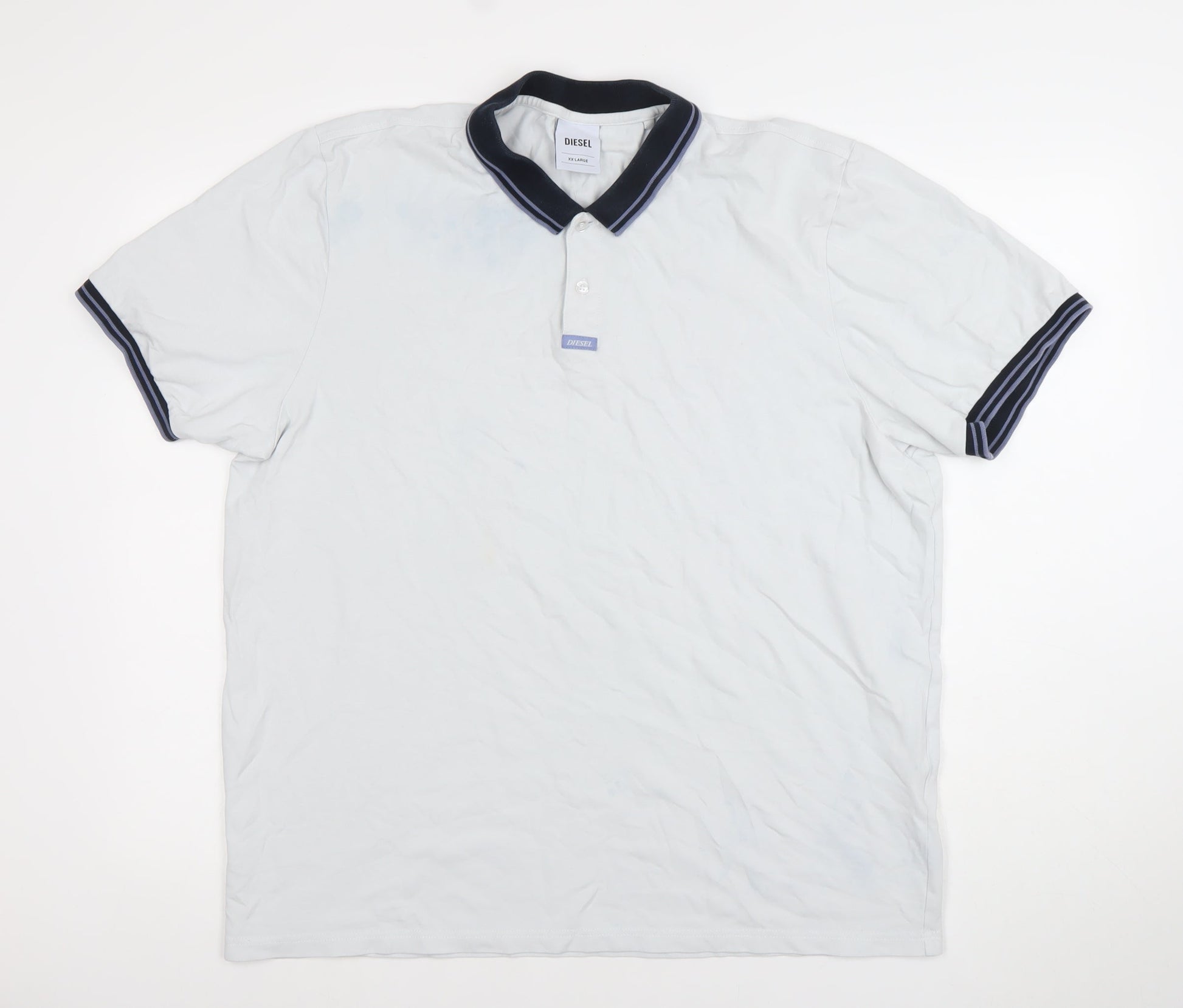 Diesel Men's White Cotton Polo Shirt 2XL Regular Fit
