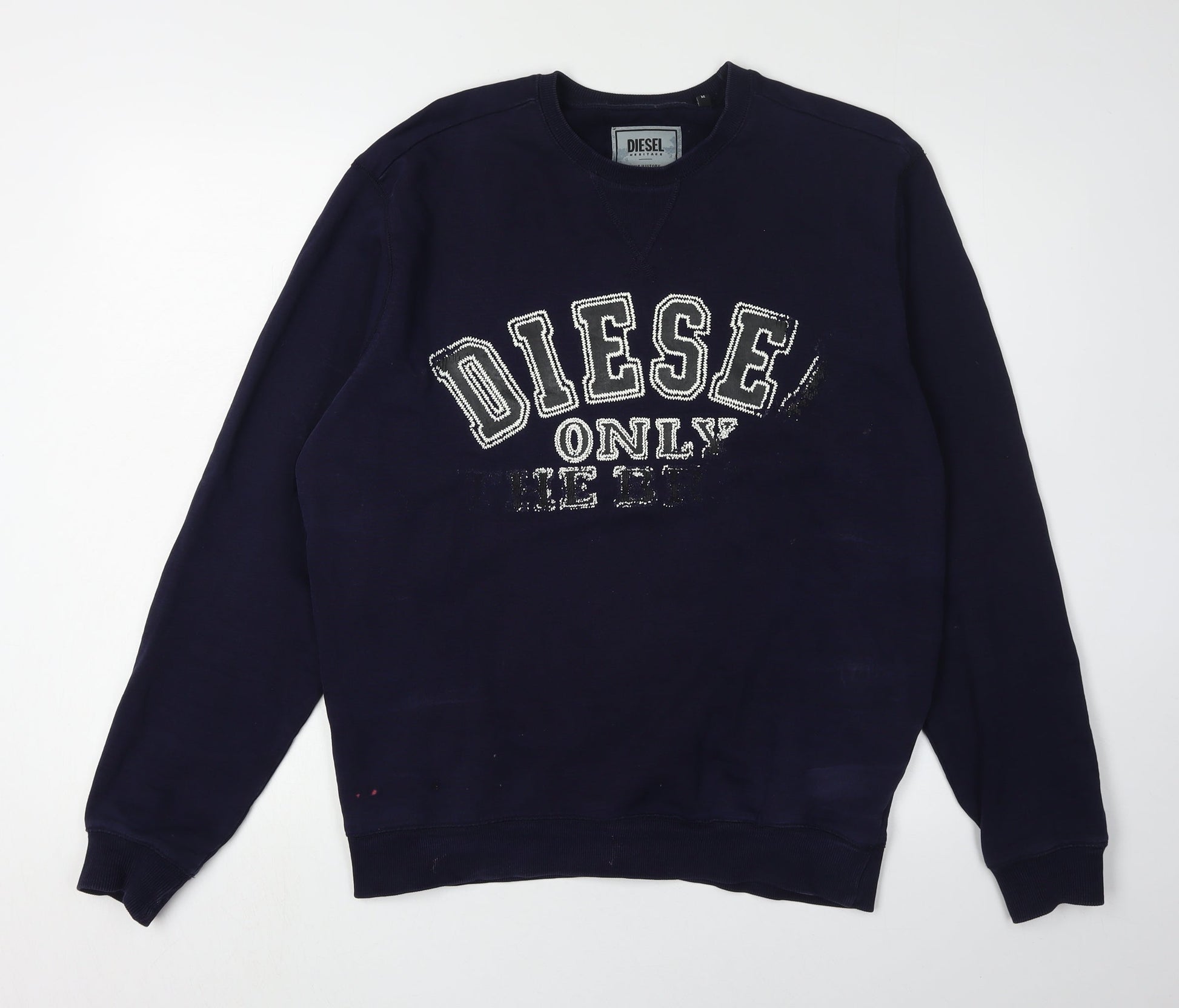 Diesel Unisex Blue Cotton Logo Pullover Sweatshirt M