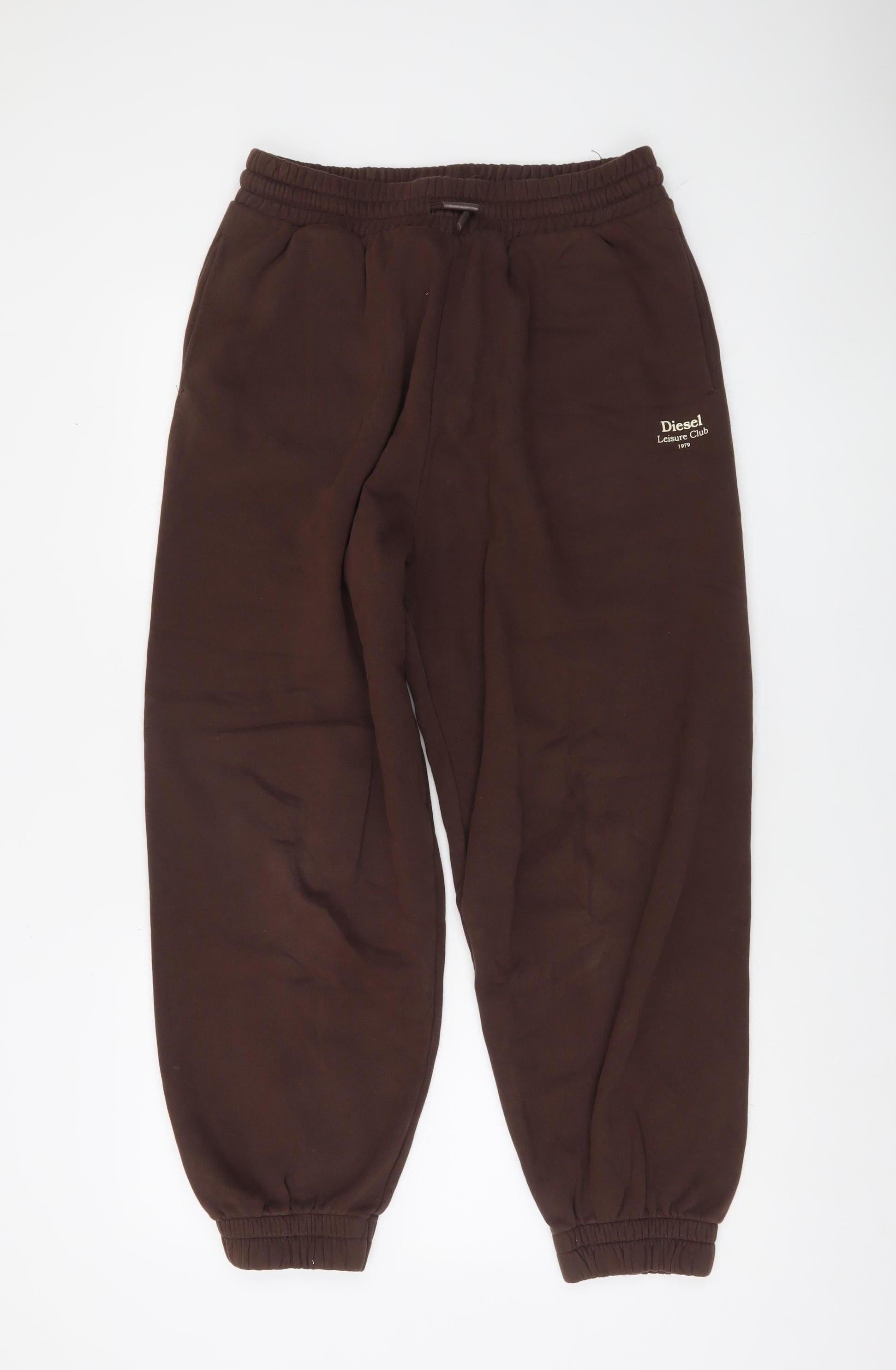 Diesel Women Brown Fleece Sweatpants L Logo Elastic Waist