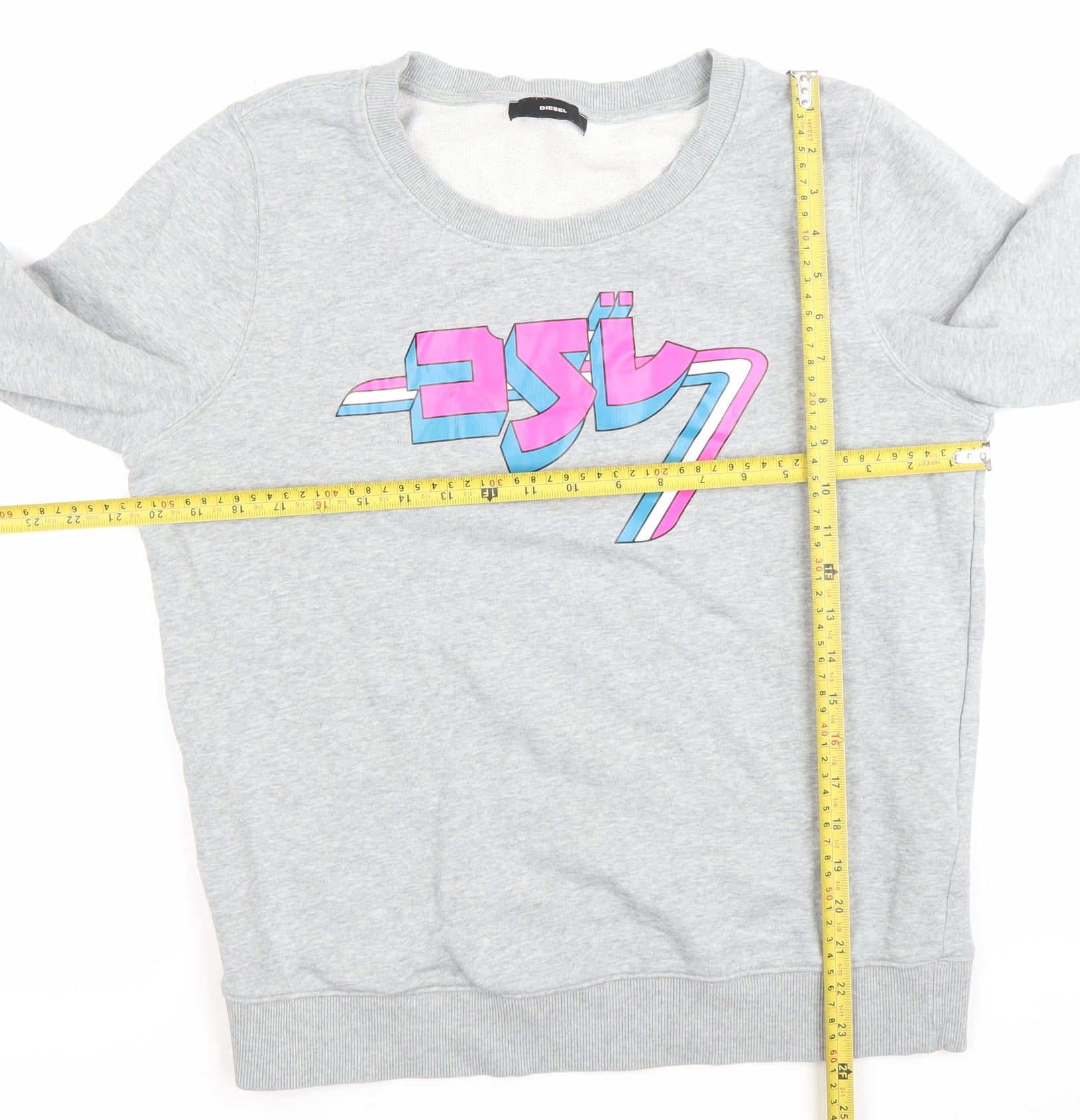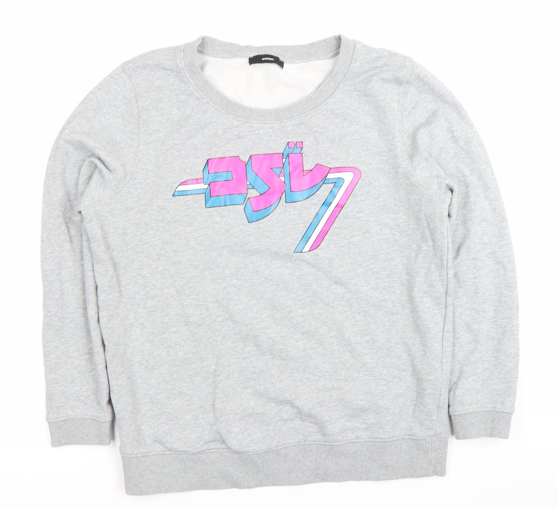 Diesel Women Grey Cotton Logo Pullover Sweatshirt Size M