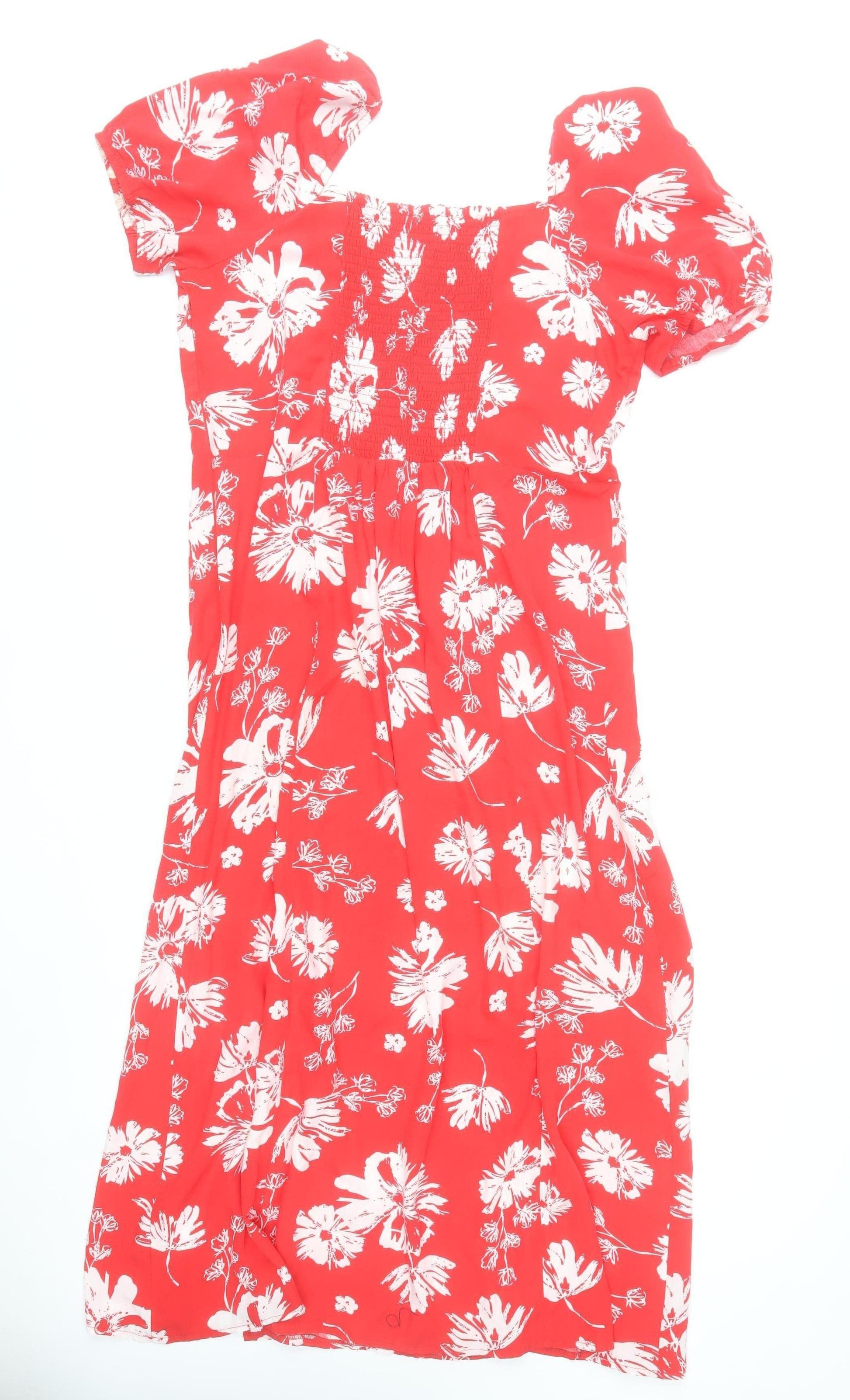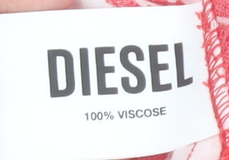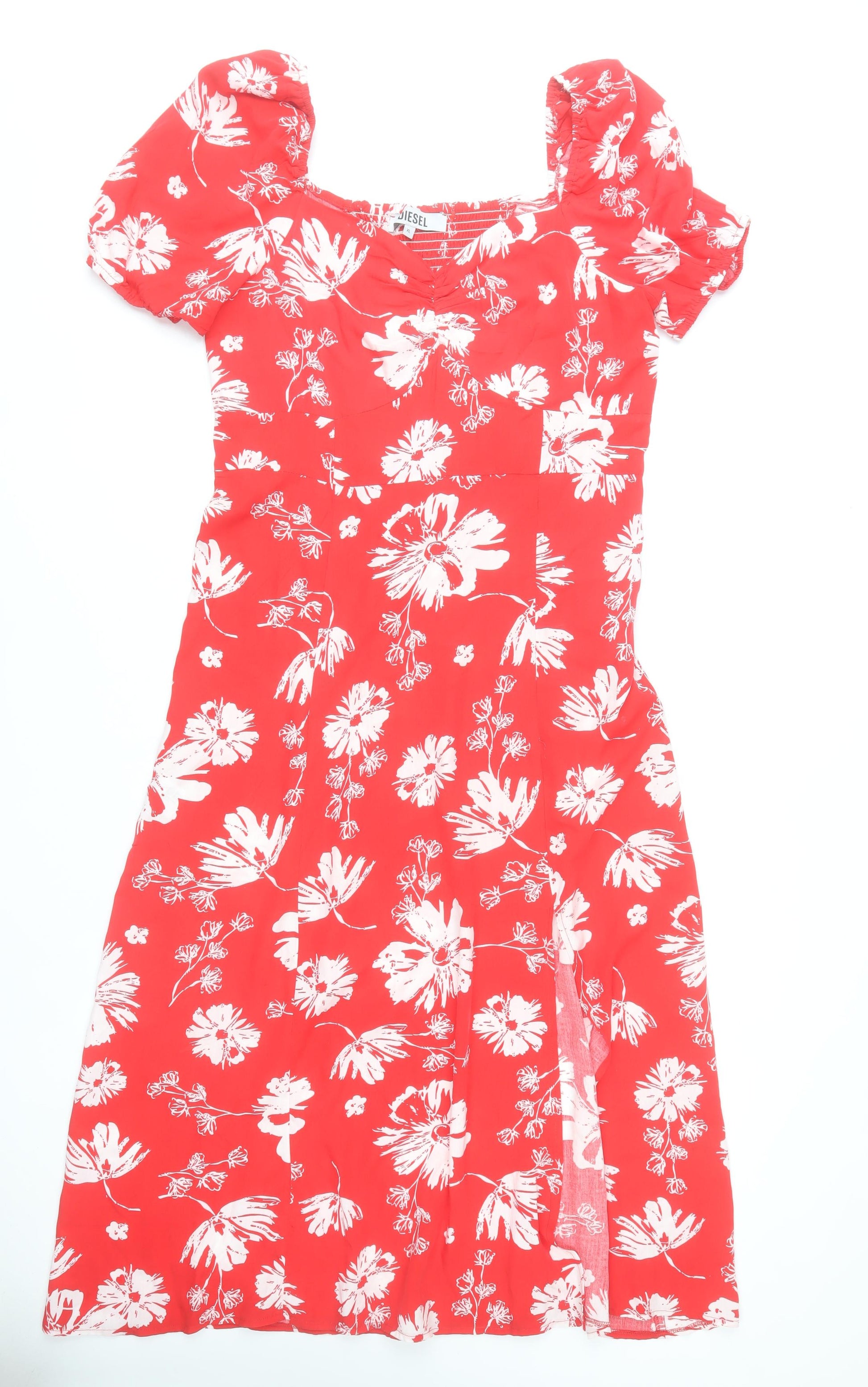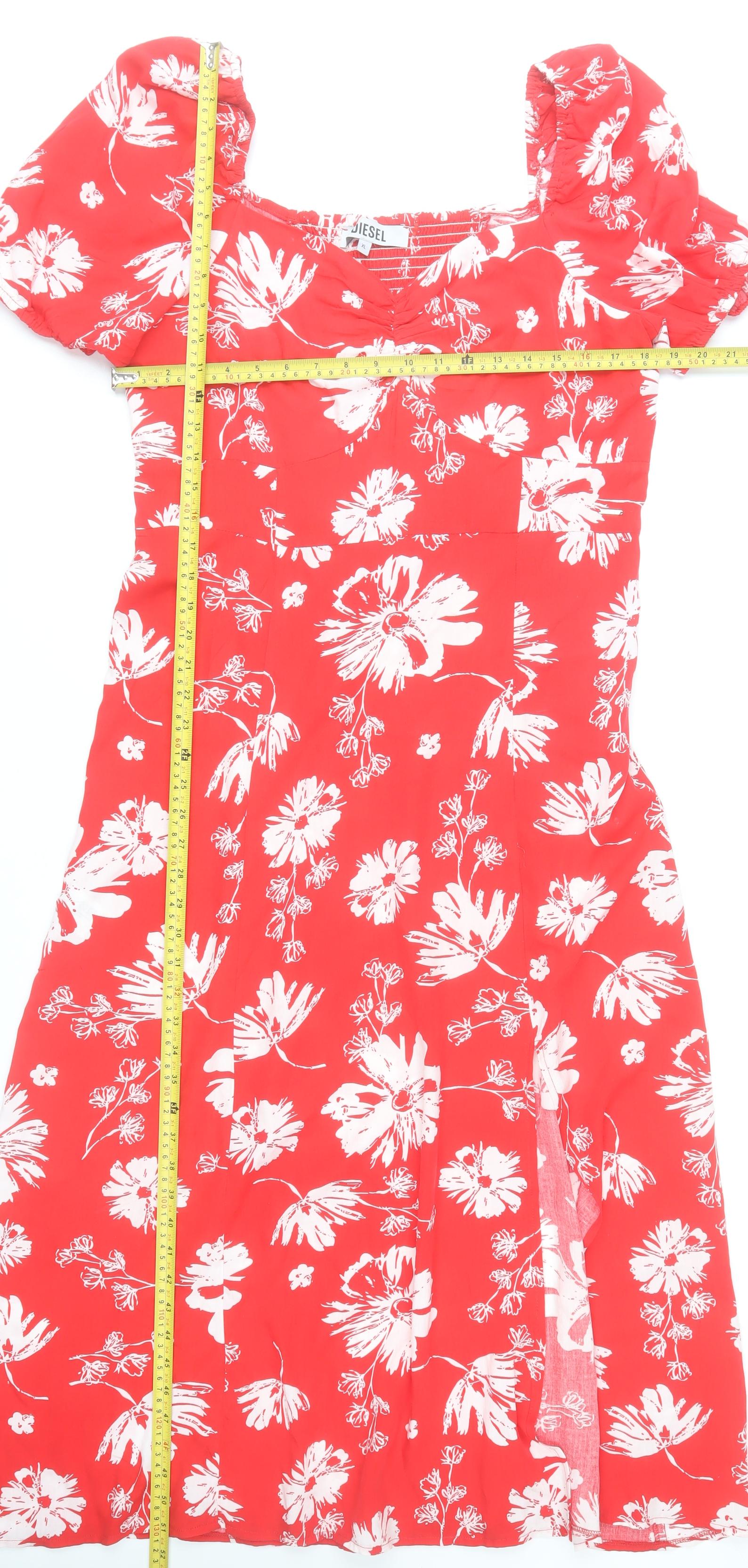Diesel Women Red Floral Midi Dress XL A-Line Puff Sleeve Summer