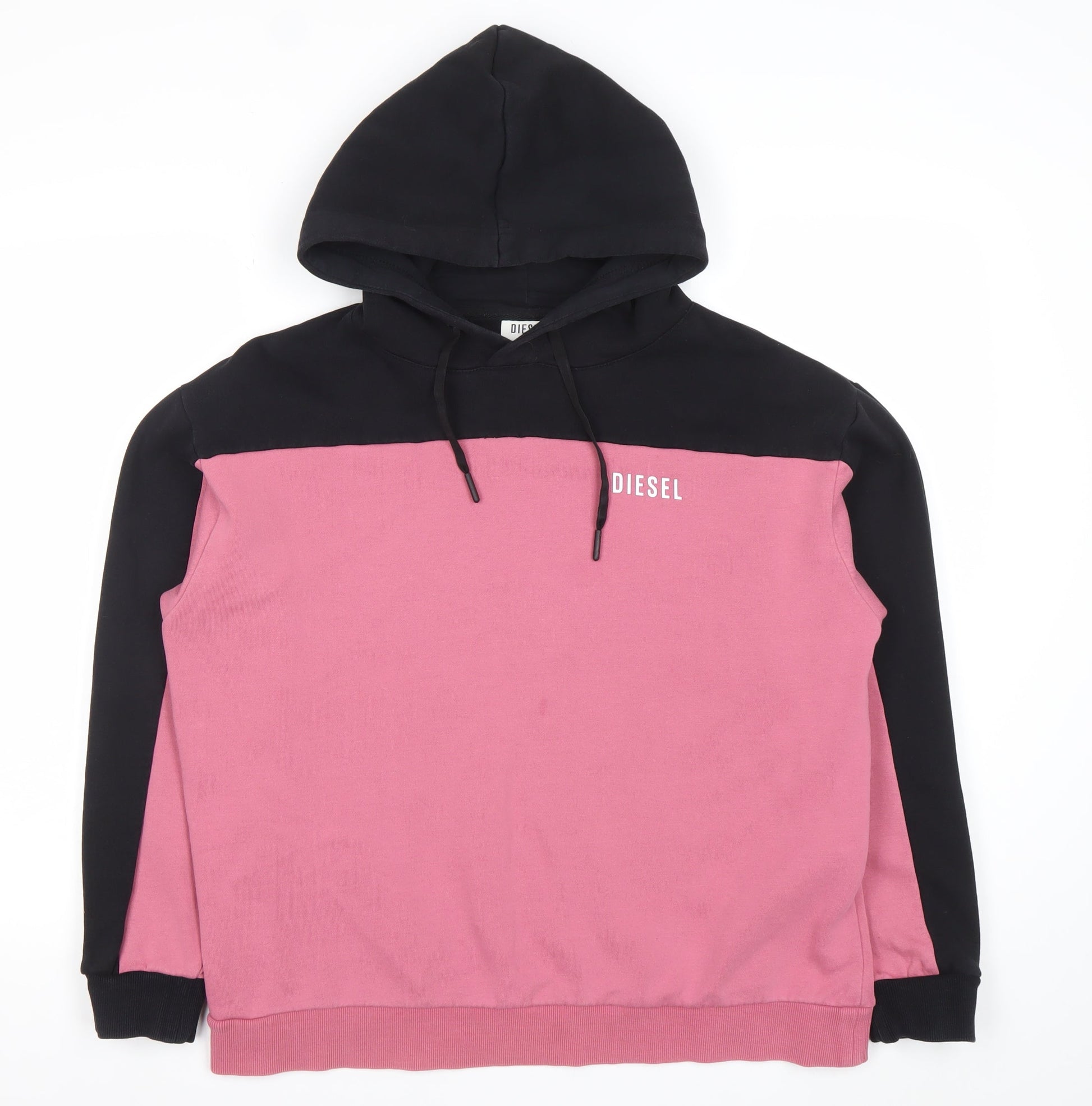 Diesel Womens Black Pink Hoodie L Colourblock Cotton Blend Pullover