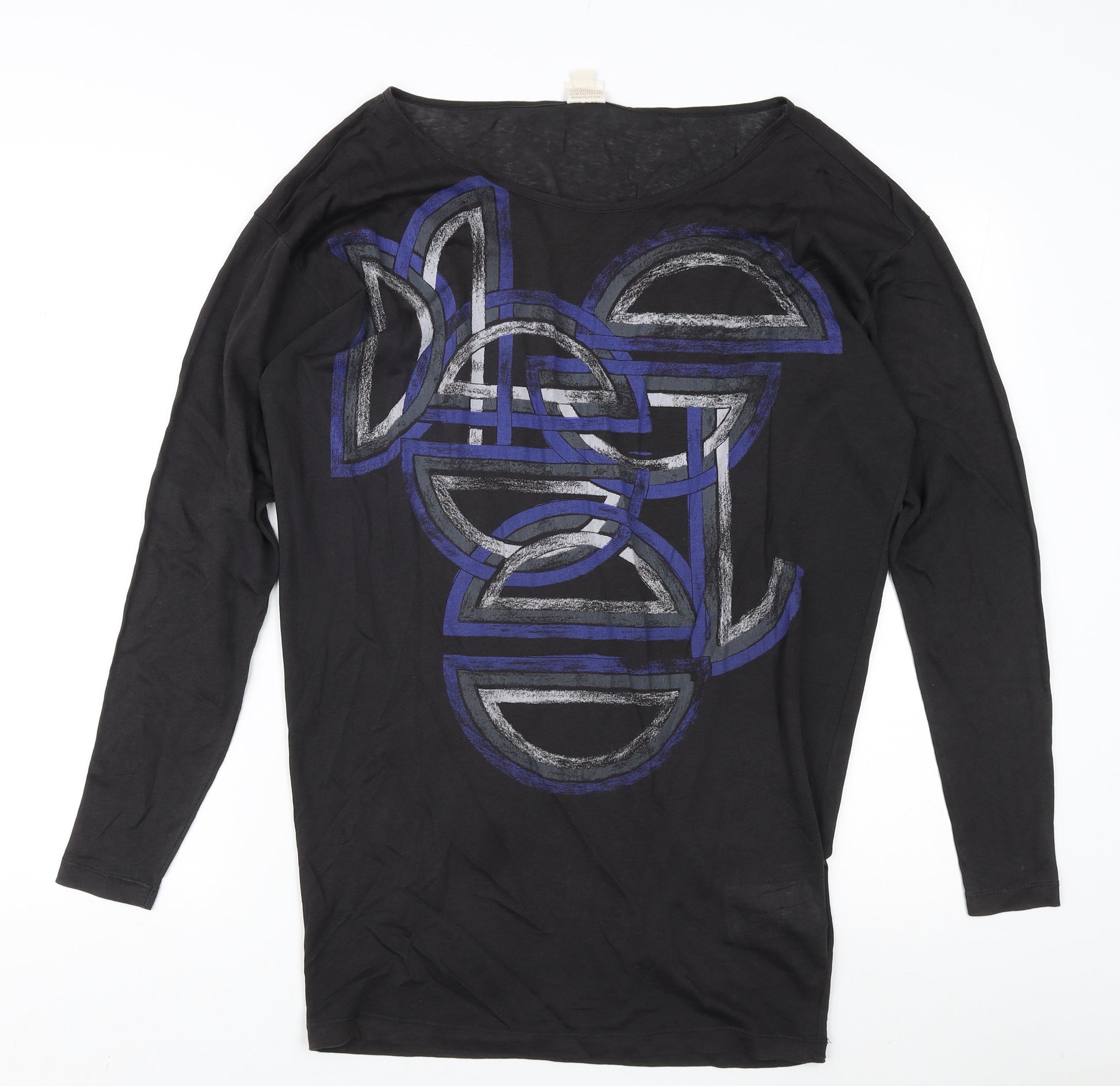 Diesel Women's Black XS Long Sleeve Geometric T-Shirt