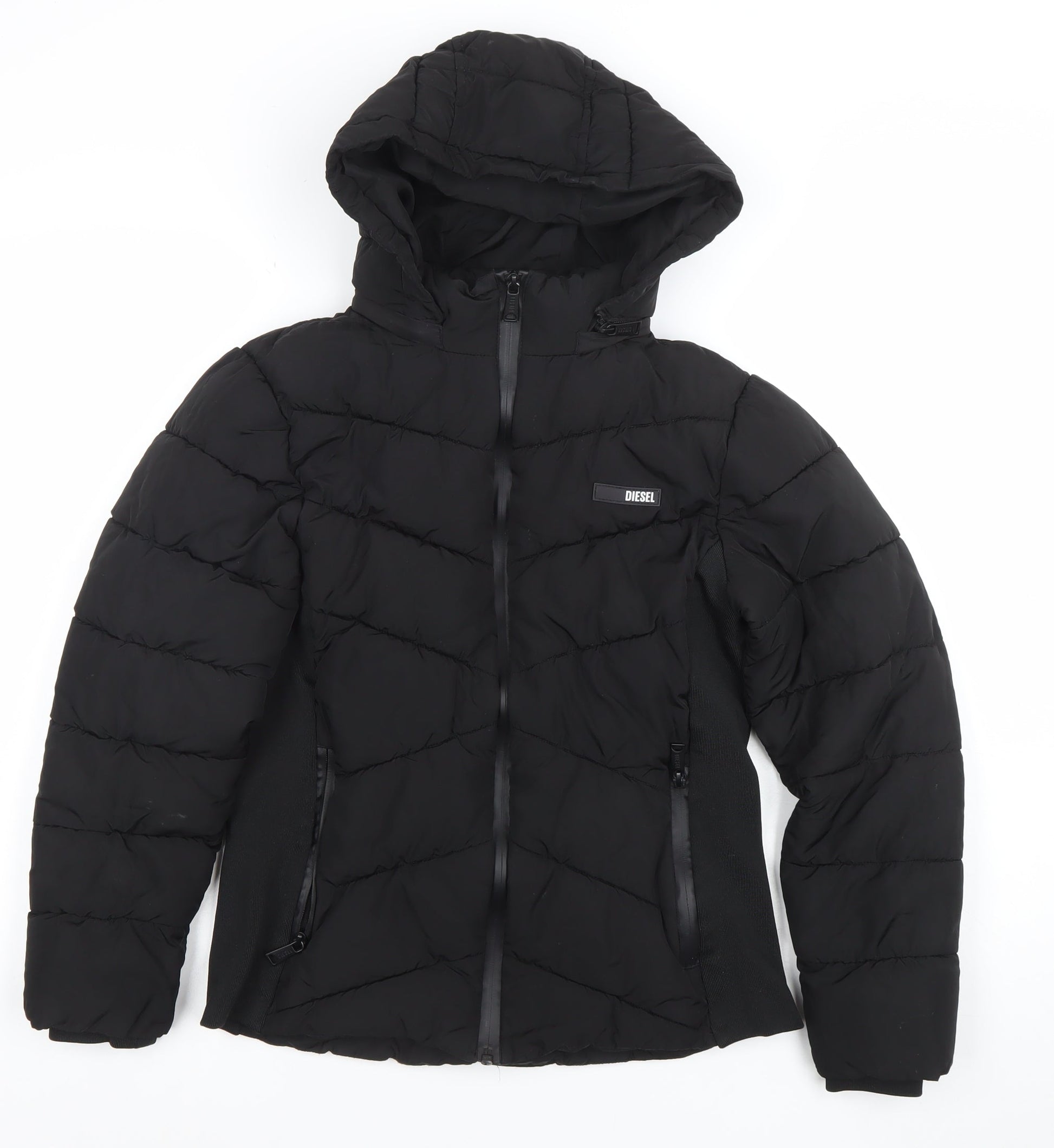 Diesel Women's Black XS Puffer Jacket Hooded Quilted Winter Coat