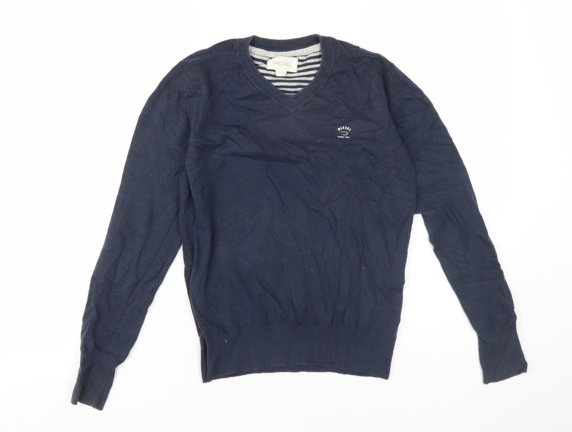 Diesel Women's Blue V-Neck Pullover Jumper Size 12