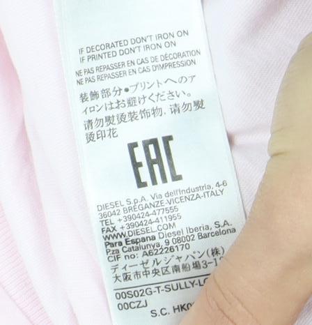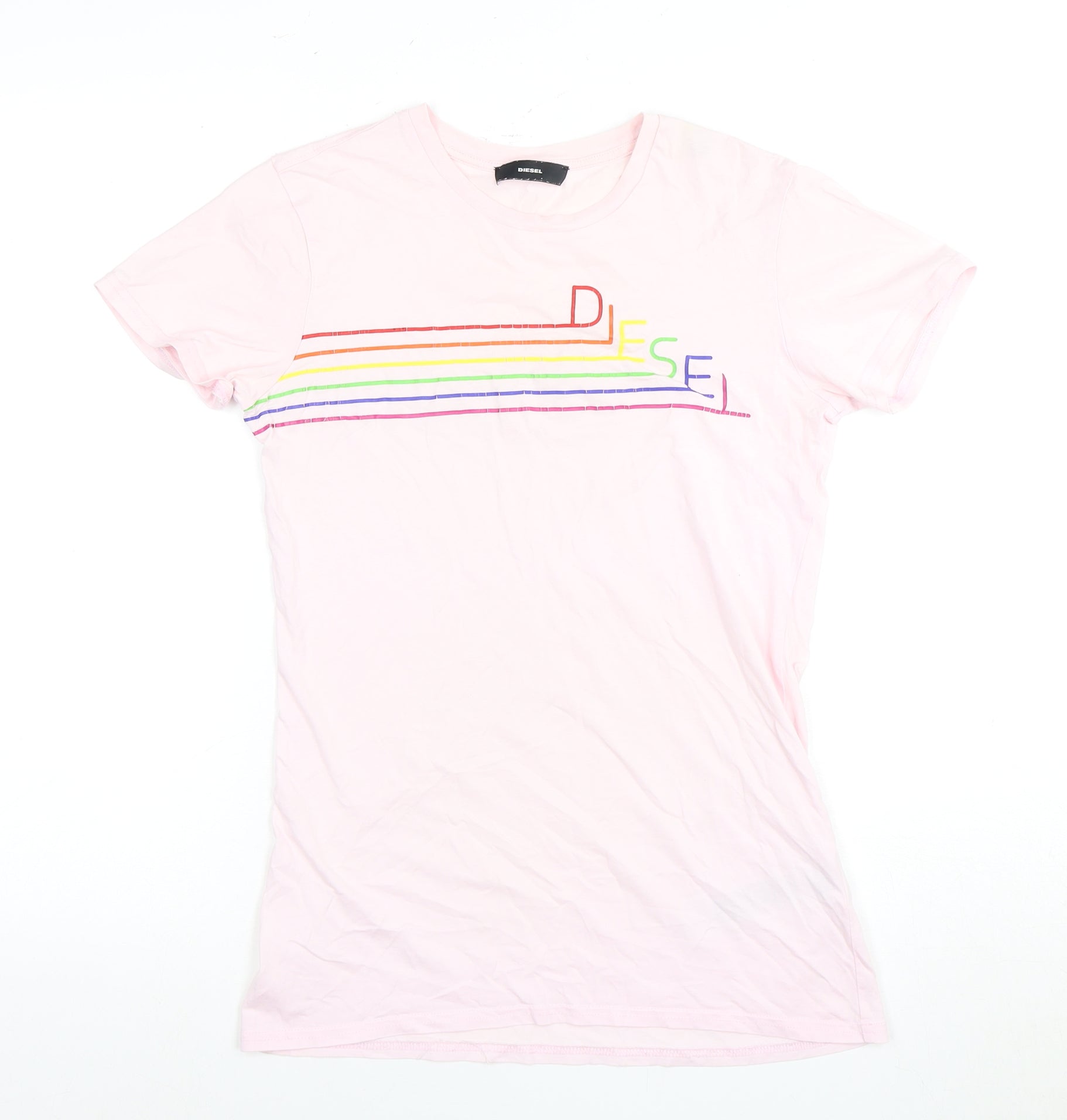 Diesel Women's Pink Crew Neck Rainbow T-Shirt - Size L