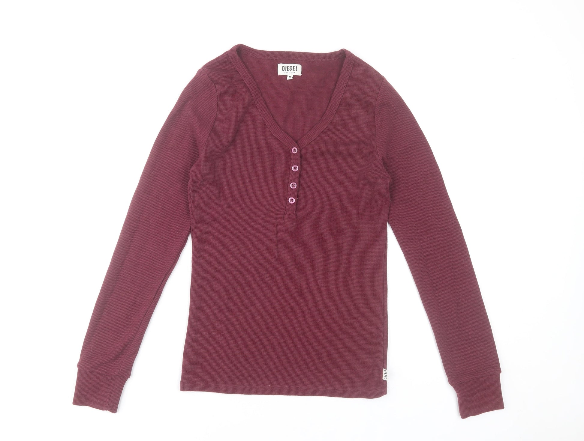 Diesel Womens Red V-Neck Long Sleeve Slim Fit Top Size M