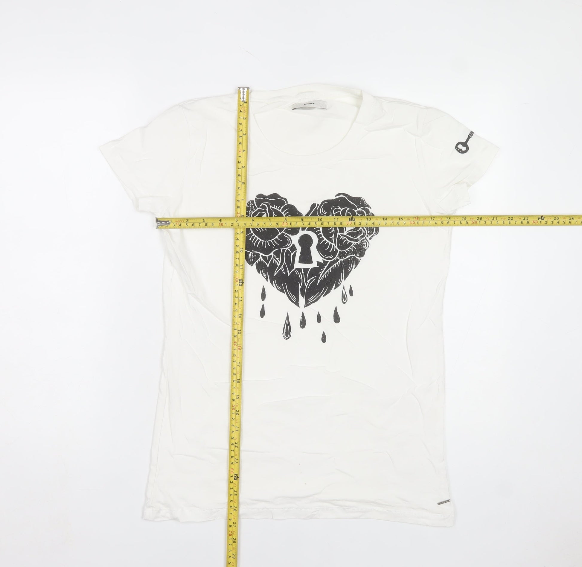 Diesel Women's White XL Graphic Heart Lock Print Cotton T-Shirt