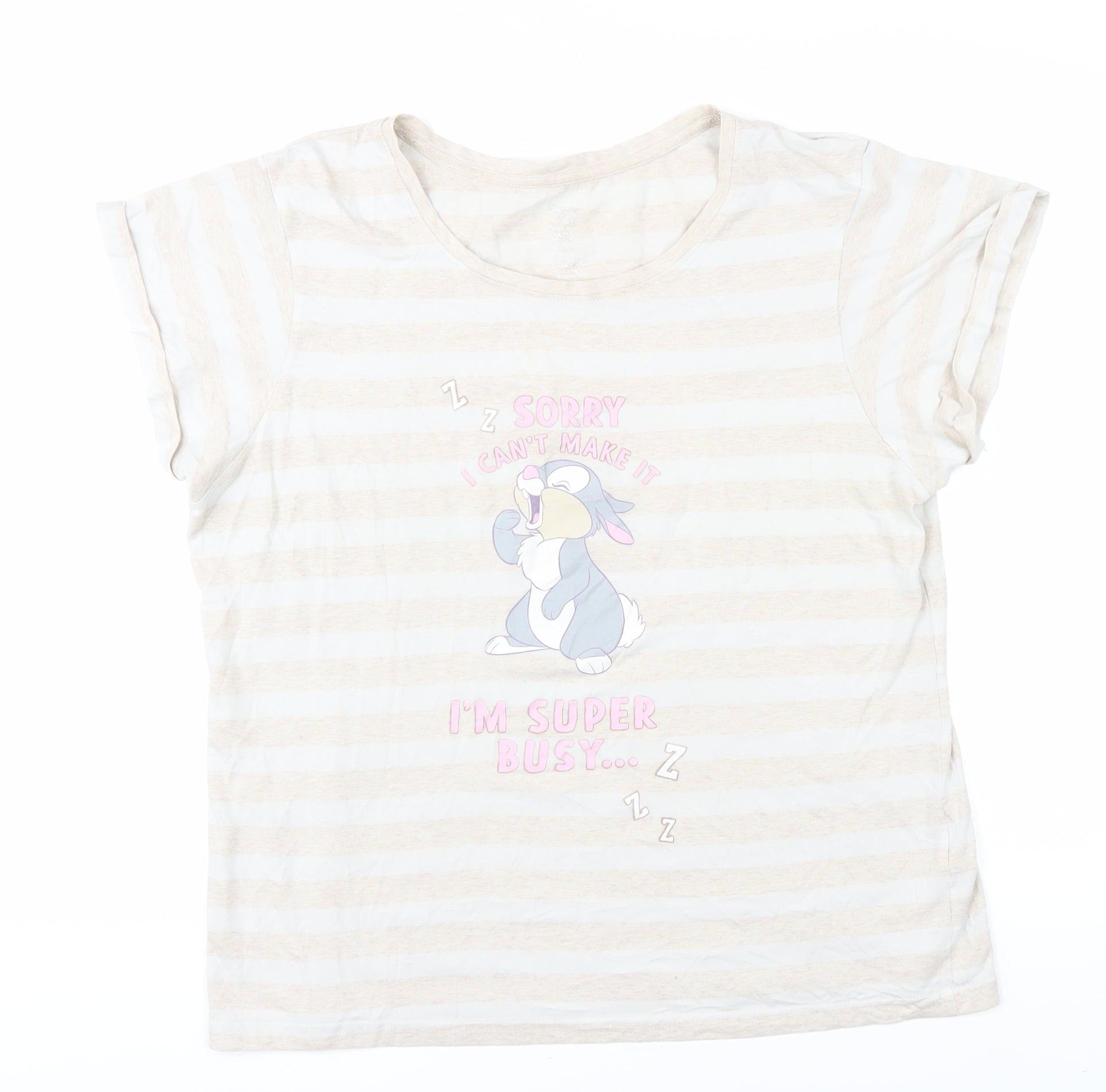 Disney Beige Women's Cartoon Striped T-Shirt Size L
