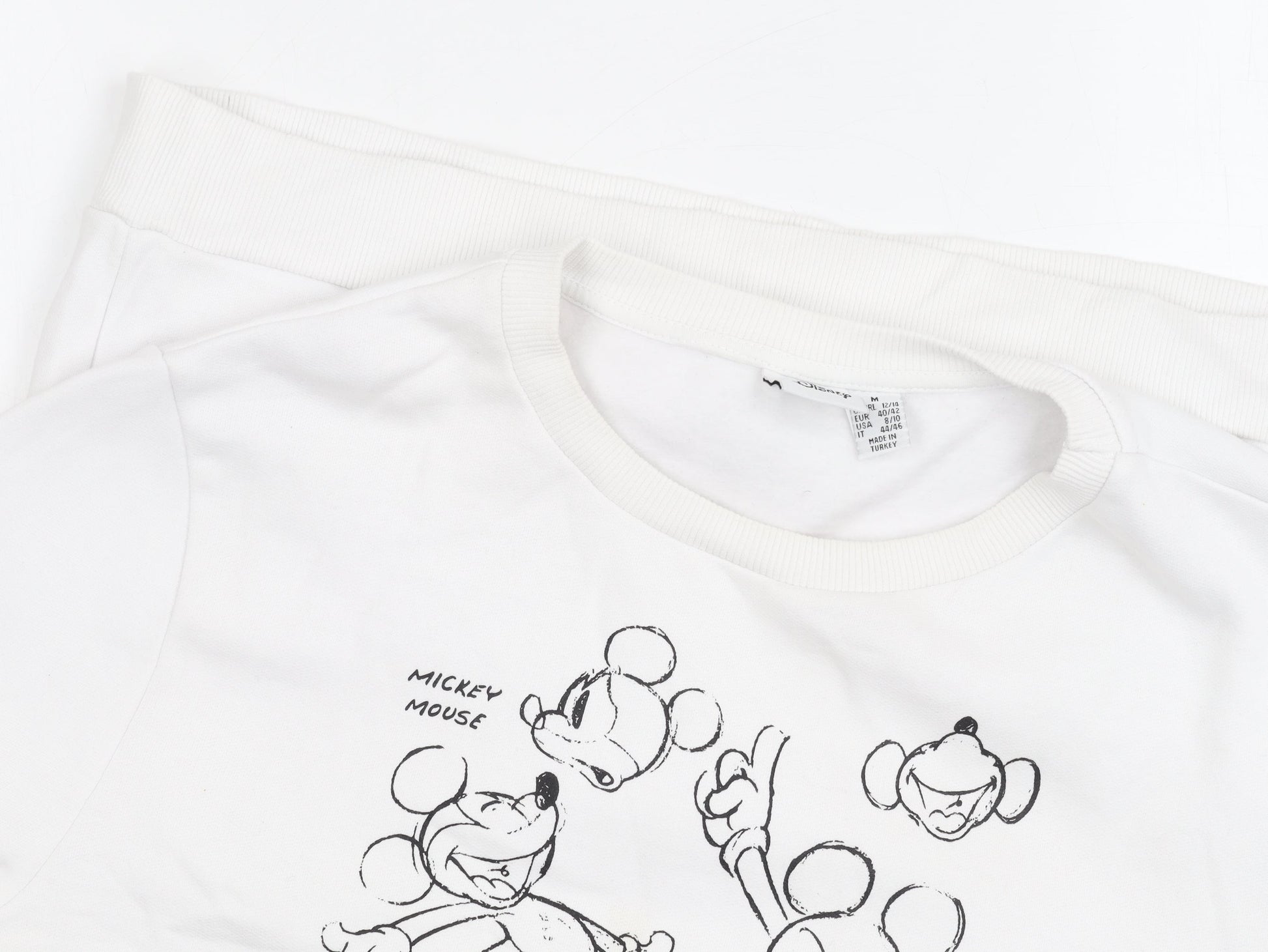 Disney White Unisex Sweatshirt - M Size, Mickey Mouse Graphic