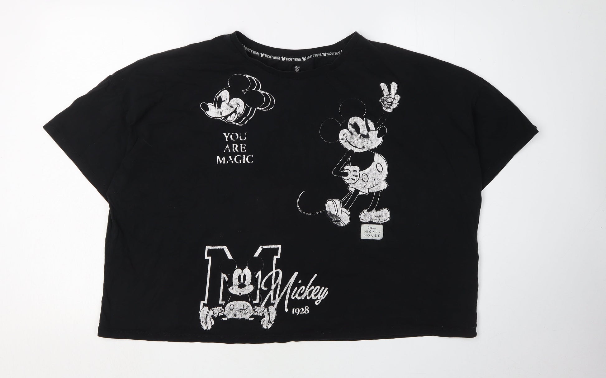 Disney Women Black XL Mickey Mouse Cartoon T-Shirt
