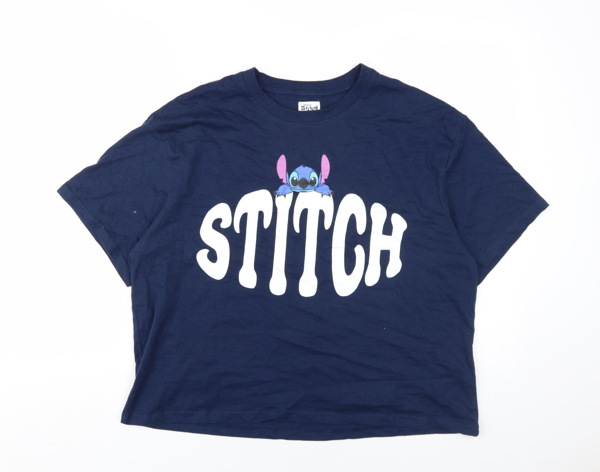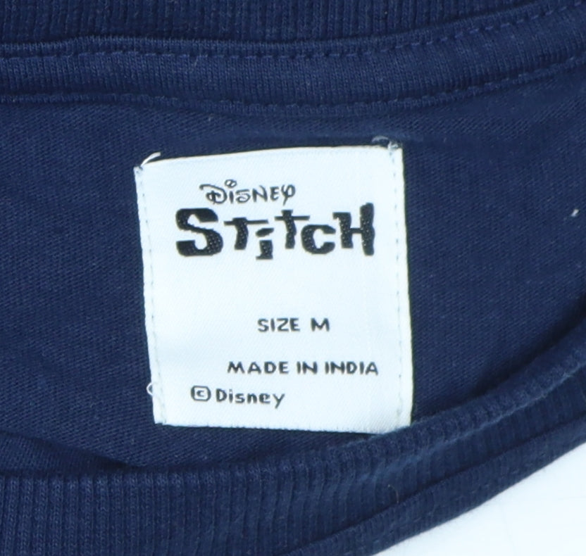Disney Women Blue Cotton Stitch T-Shirt Size M
