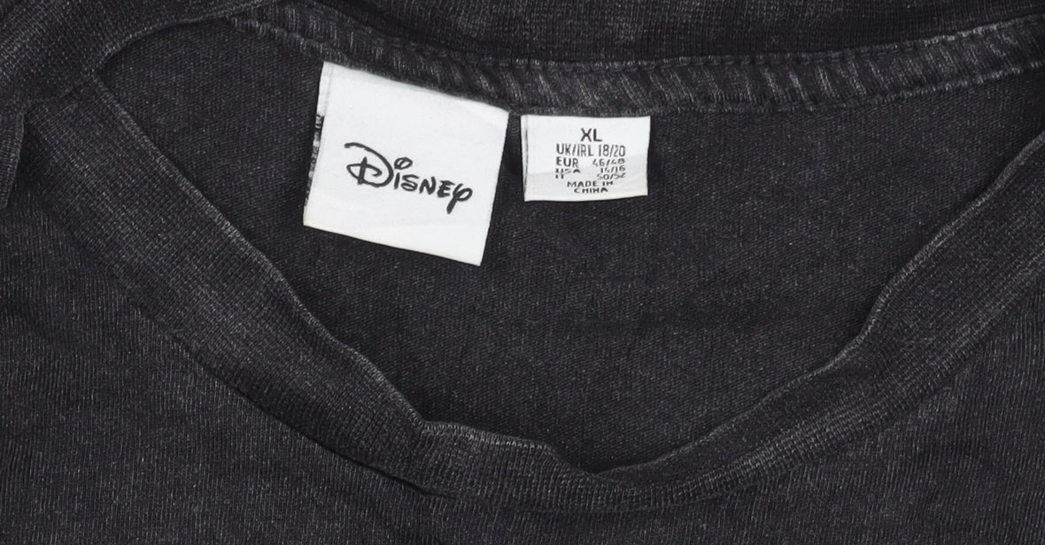 Disney Women’s Black Stitch T-Shirt XL Short Sleeve Cotton Casual