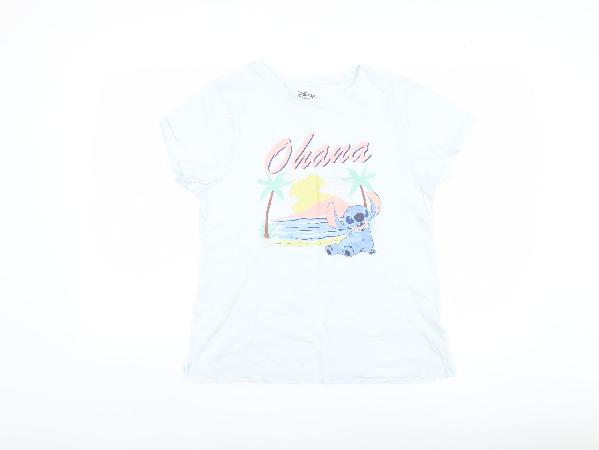 Disney Women’s White Cartoon T-Shirt, S, Casual Crew Neck