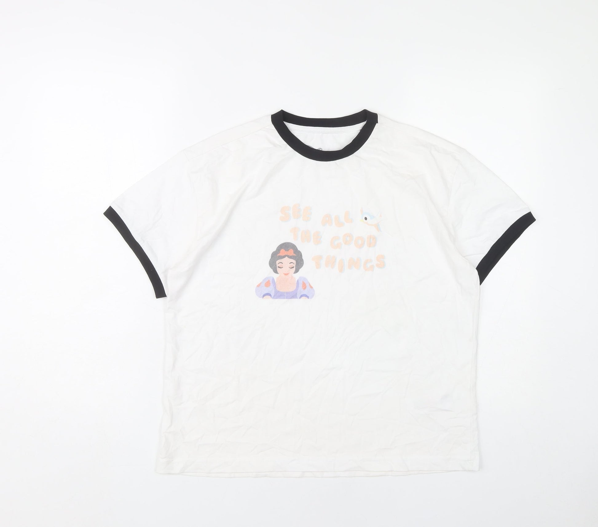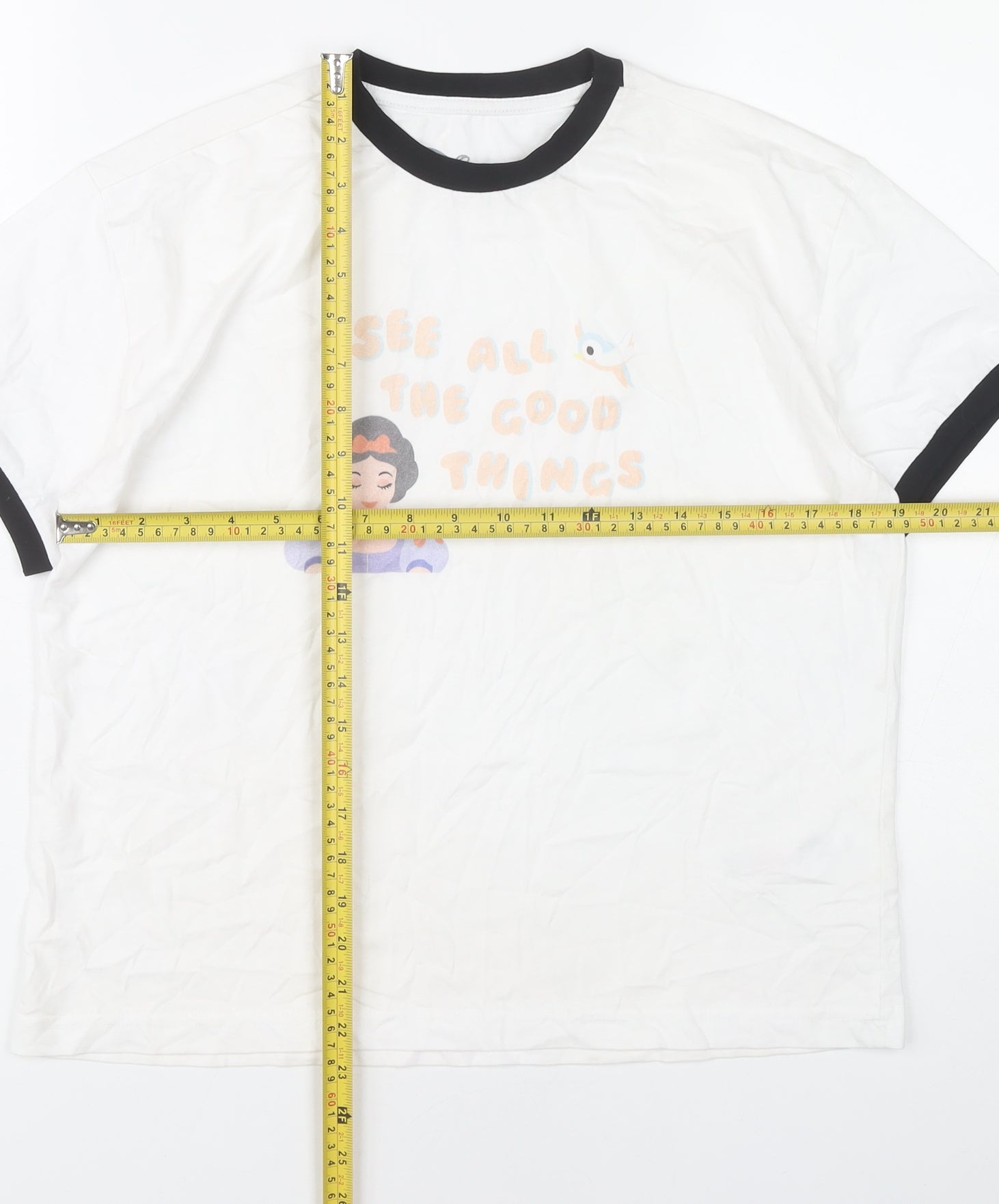 Disney Women White Ringer T-Shirt Snow White Graphic Size L