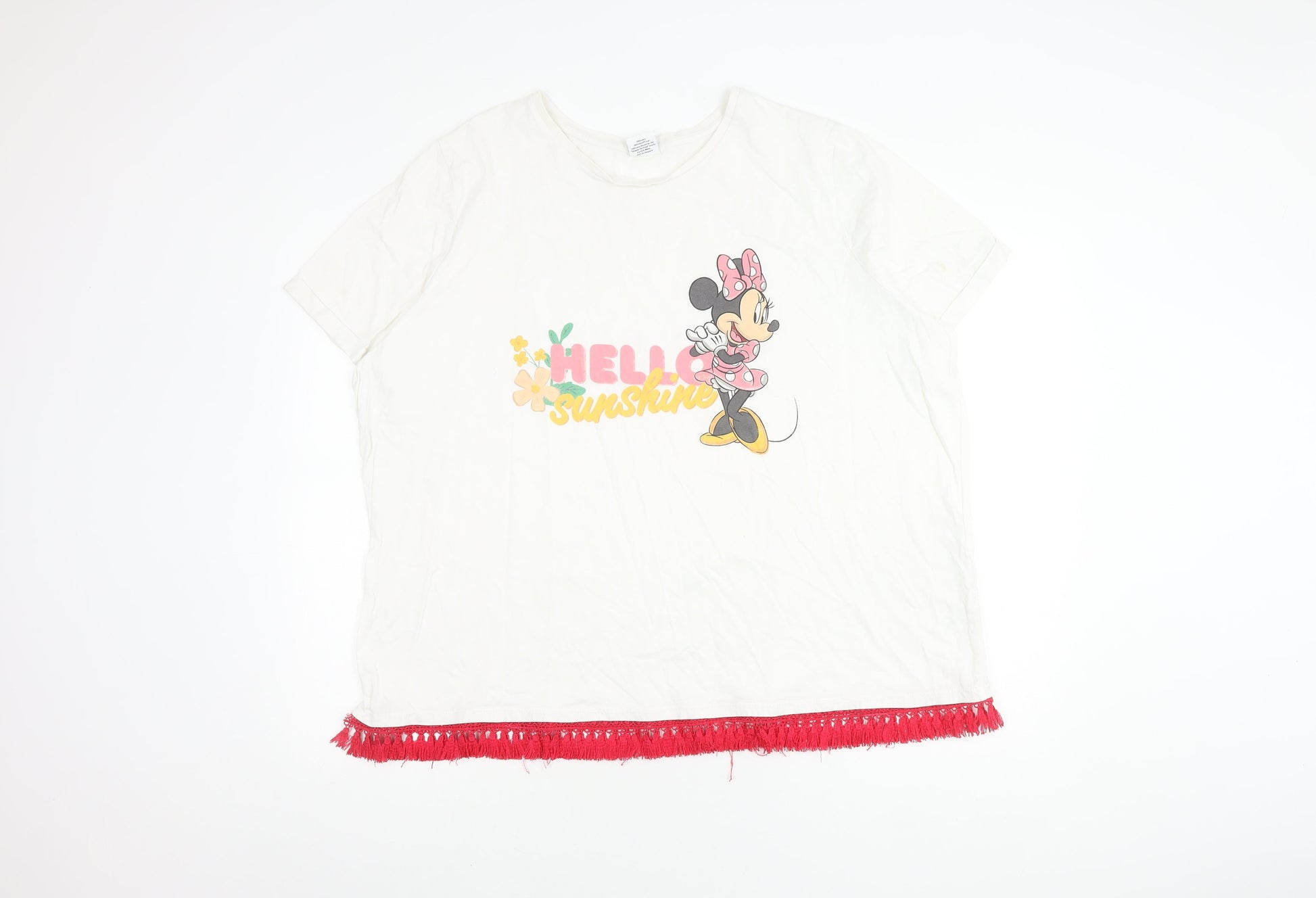 Disney Women White T-Shirt with Fringe - Size 26