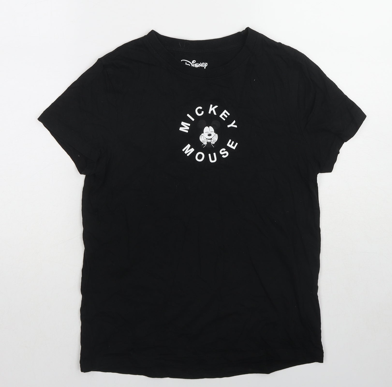Disney Womens Black Cotton Basic T-Shirt Size 6 Crew Neck - Mickey Mouse Size 6-8
