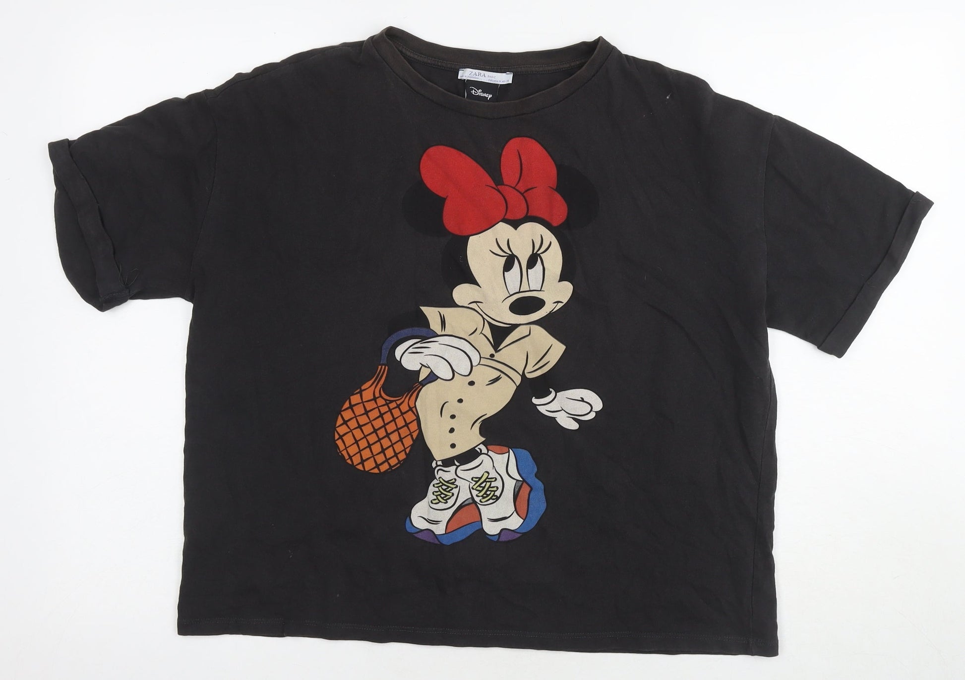 Disney Womens Black Cotton Basic T-Shirt Size M Round Neck - Minnie Mouse