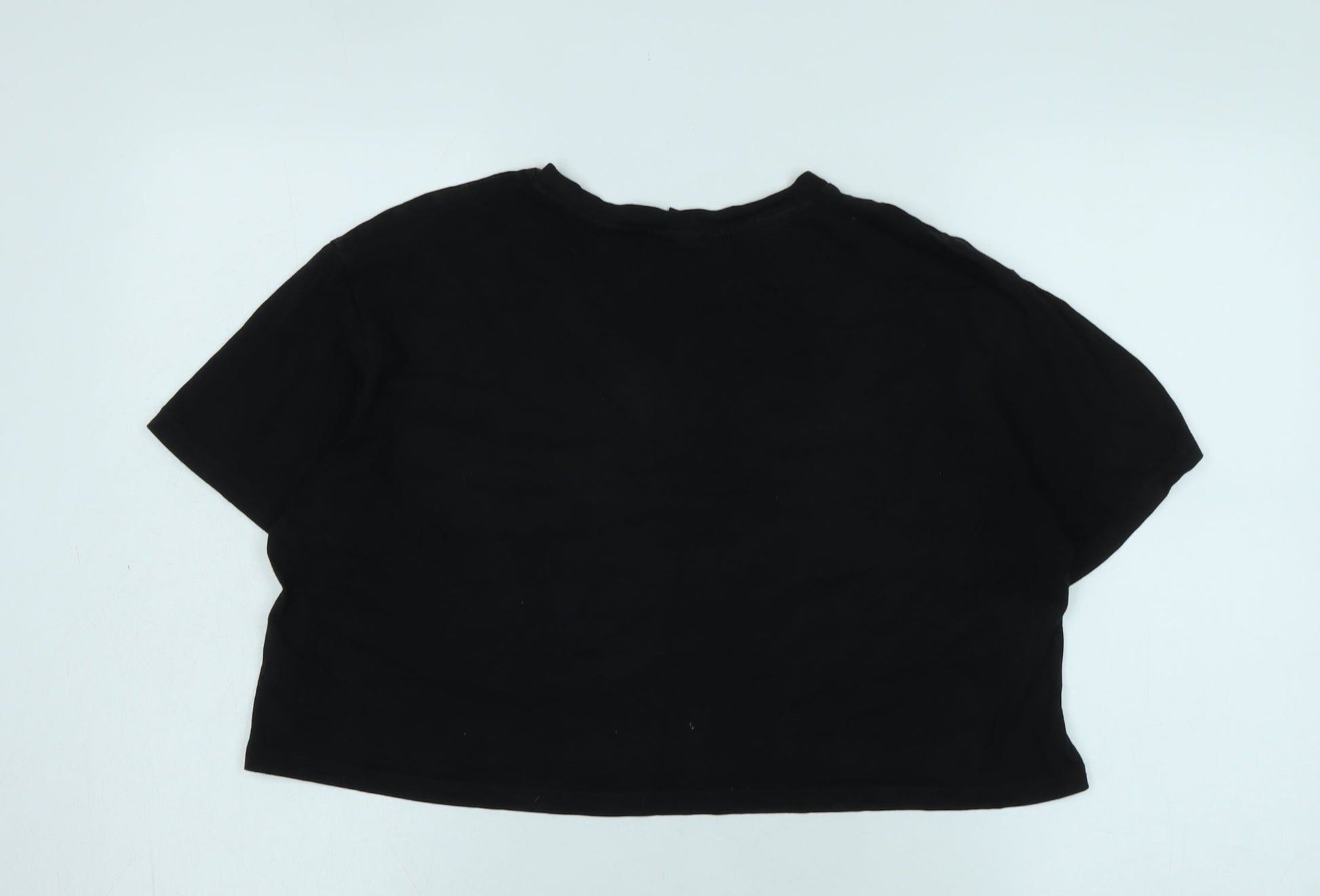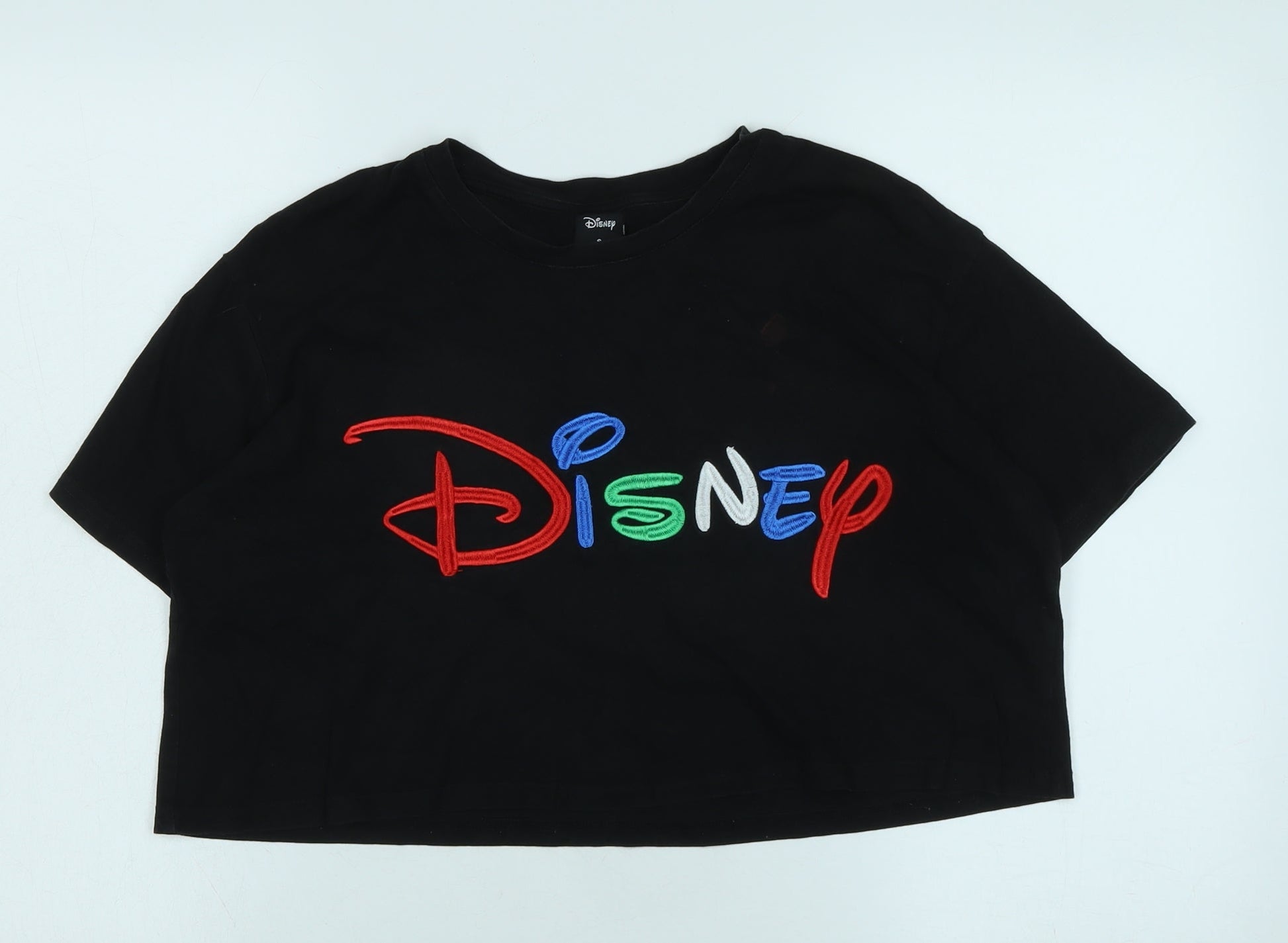 Disney Womens Black Cotton Basic T-Shirt Size S Crew Neck - Logo - Disney