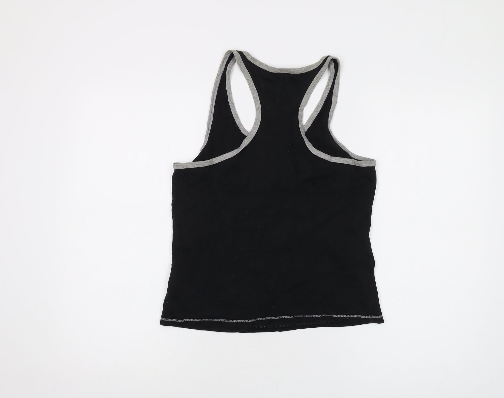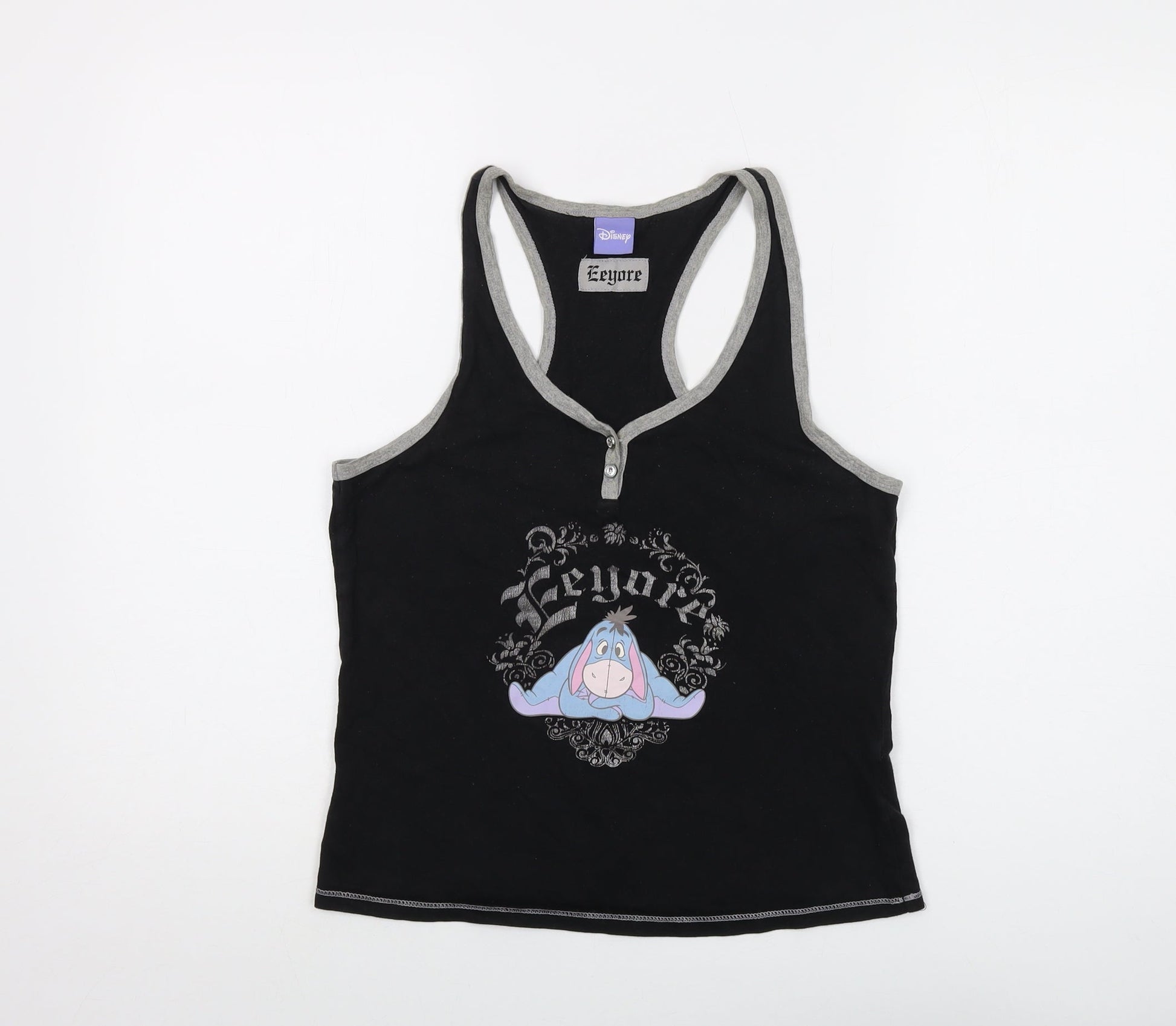 Disney Womens Black Cotton Basic Tank Size 10 Round Neck