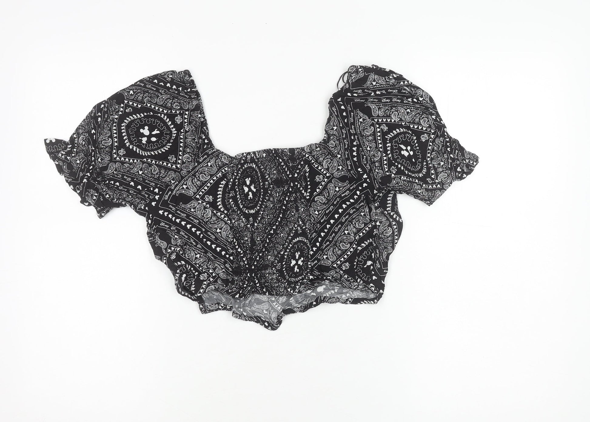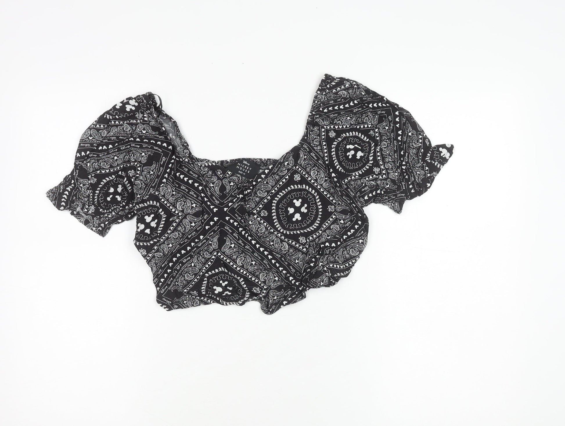 Disney Women's Black Cropped Mickey Mouse Blouse