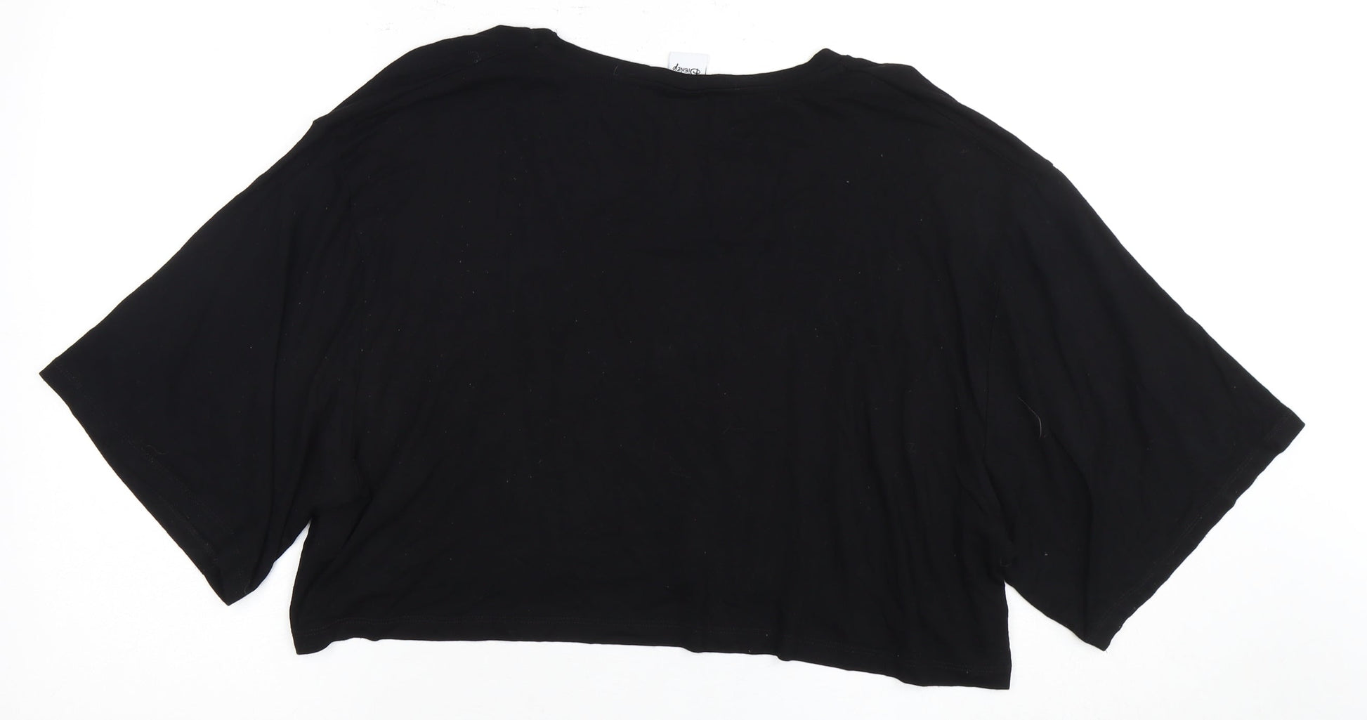Disney Women's Black Mickey Christmas Cropped T-Shirt - Size 14
