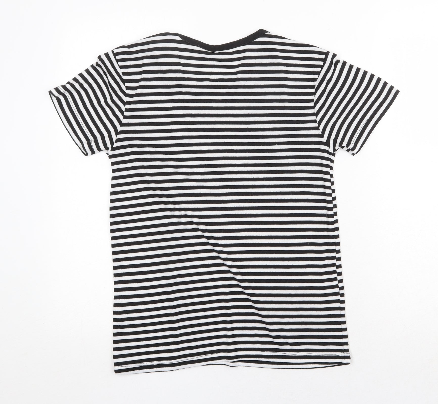 Disney Womens Black Striped Polyester Basic T-Shirt Size XS Round Neck - Winnie the Pooh Free Hugs