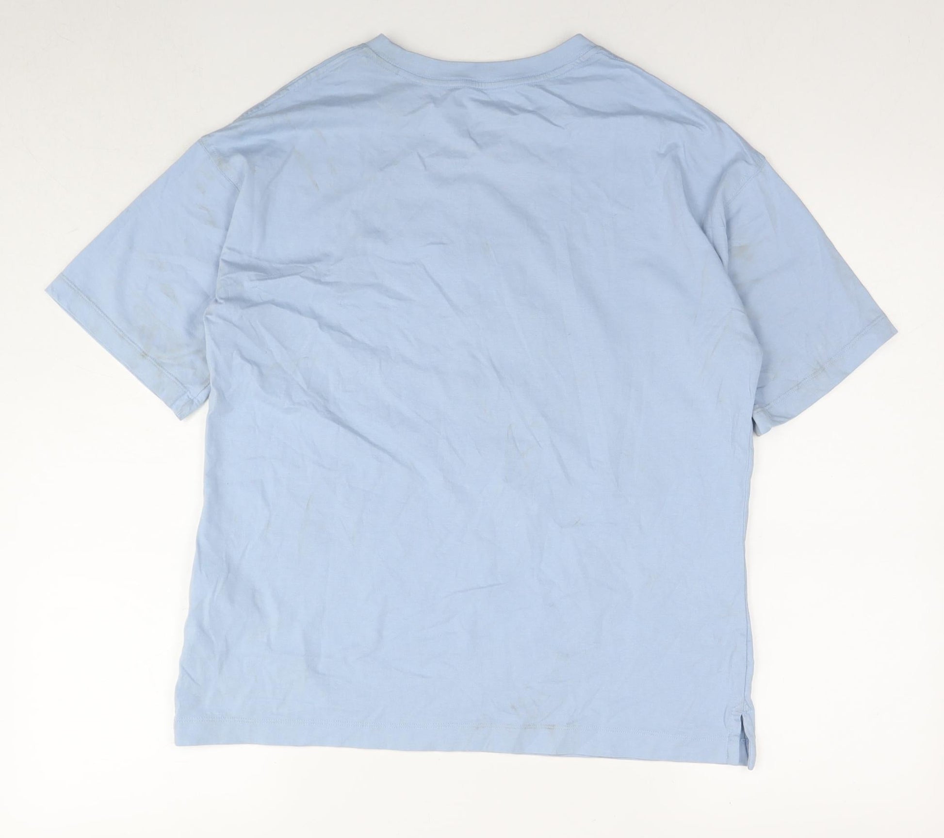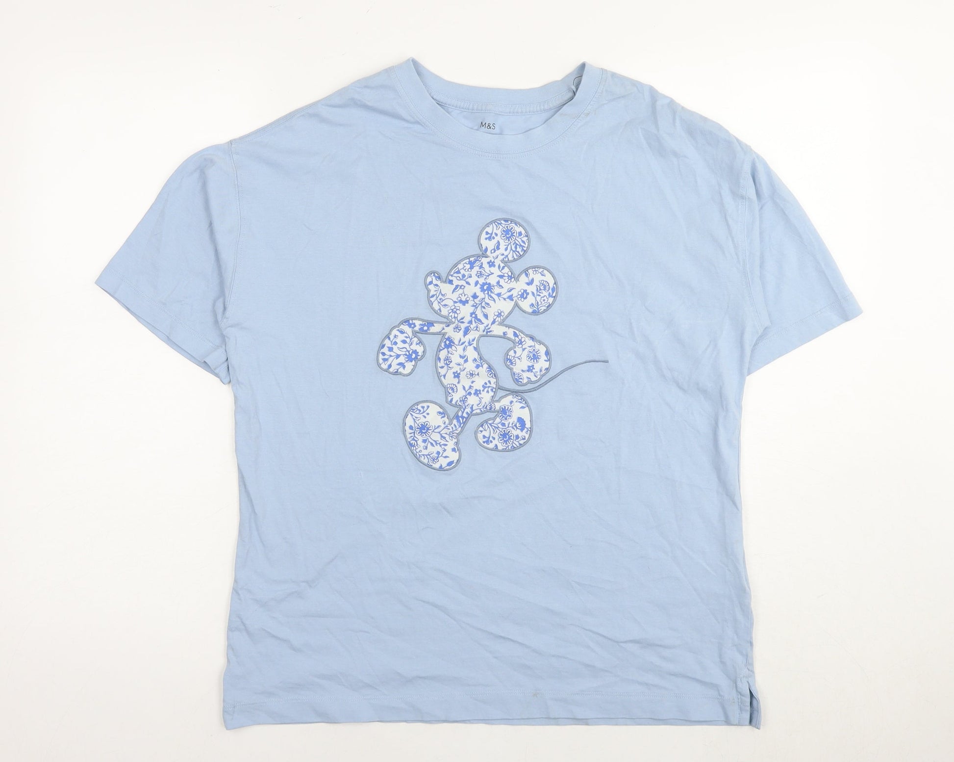 Disney Womens Blue Cotton Basic T-Shirt Size 10 Round Neck - Mickey Mouse Floral