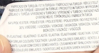 - Material Breakdown: 64% Polyester 30% Viscose 6% Elastane
