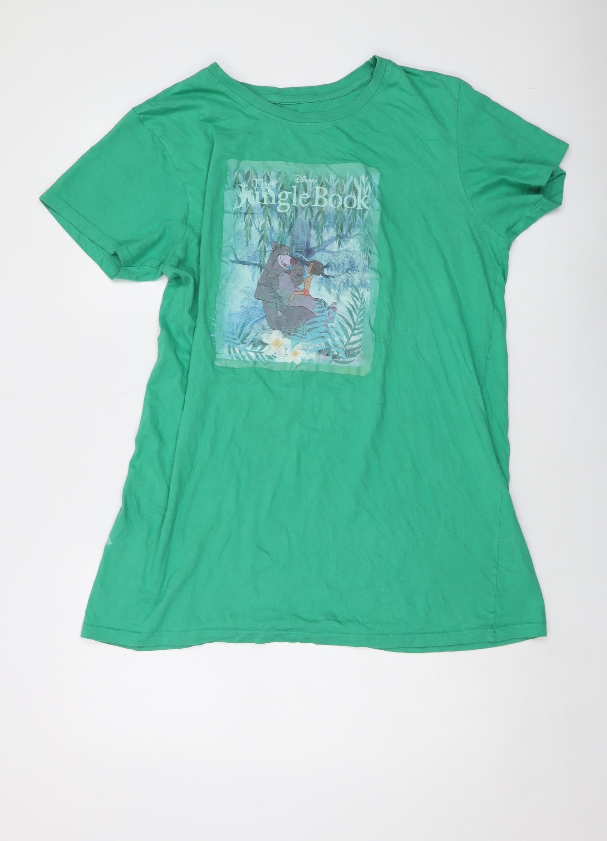 Disney Womens Green Cotton Basic T-Shirt Size 10 Crew Neck