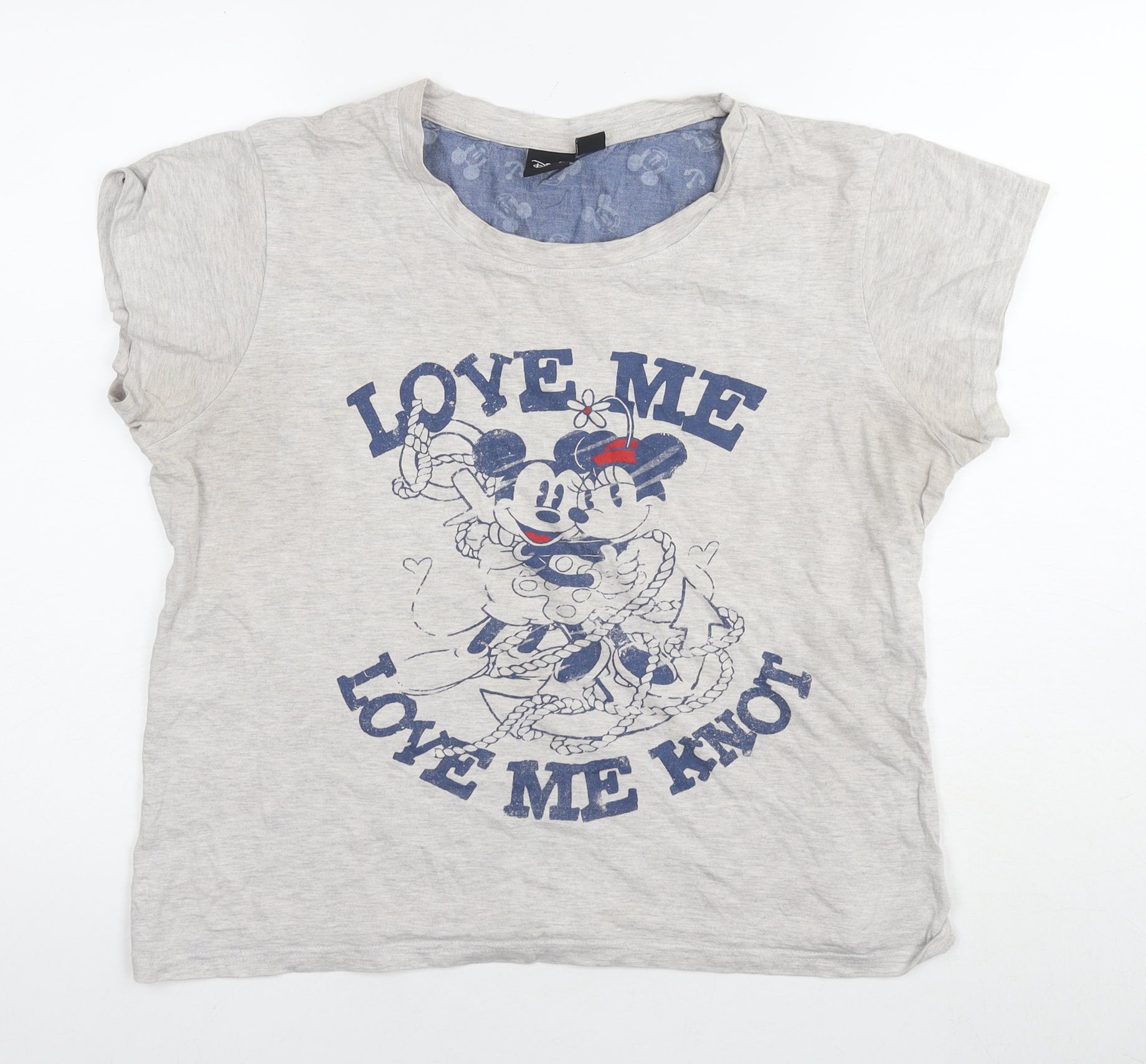 Disney Womens Grey Cotton Basic T-Shirt Size 14 Round Neck - Mickey Mouse Love Minnie Mouse Size 14-16